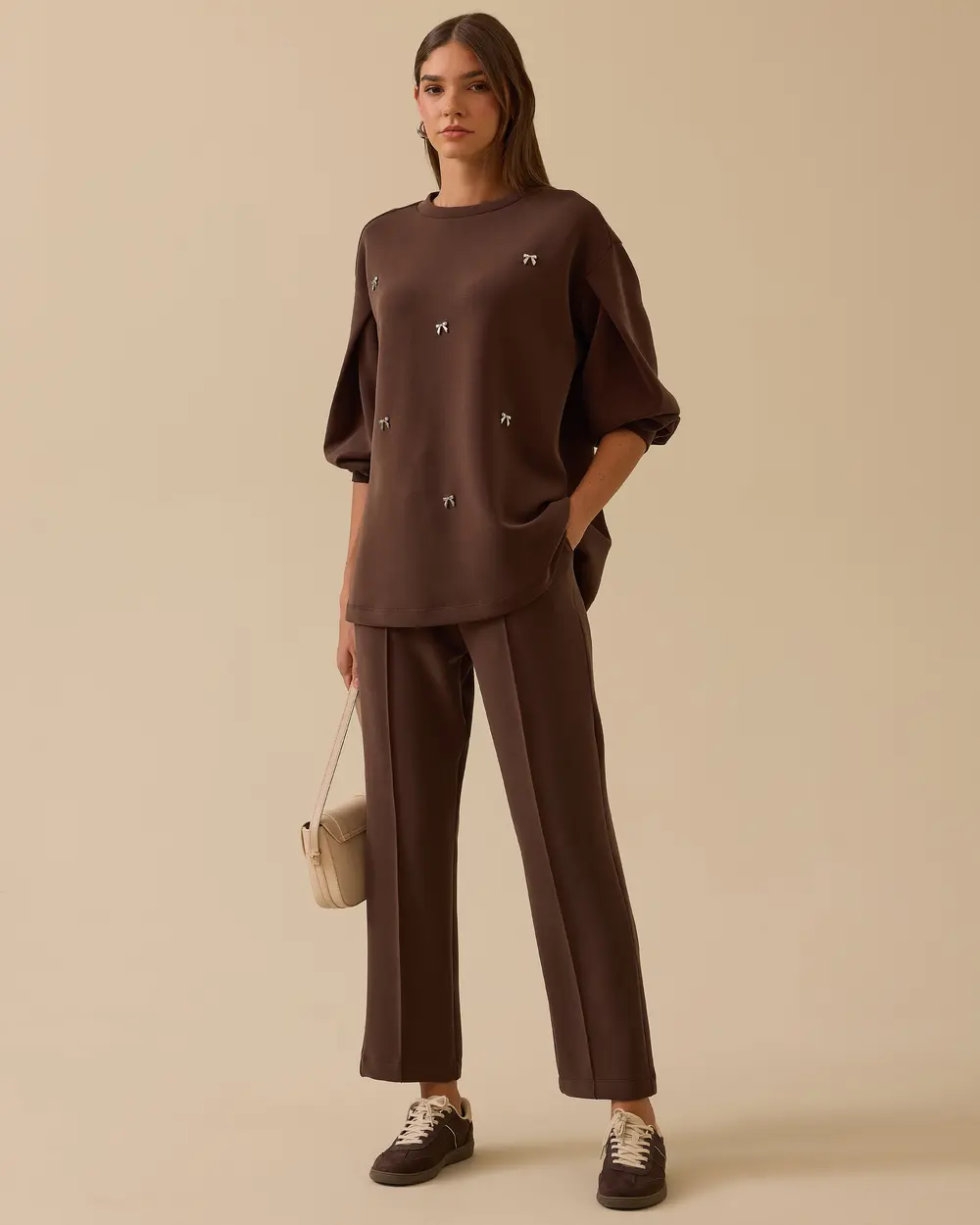Loose-sleeved sweatshirt with accessory details - Seçil