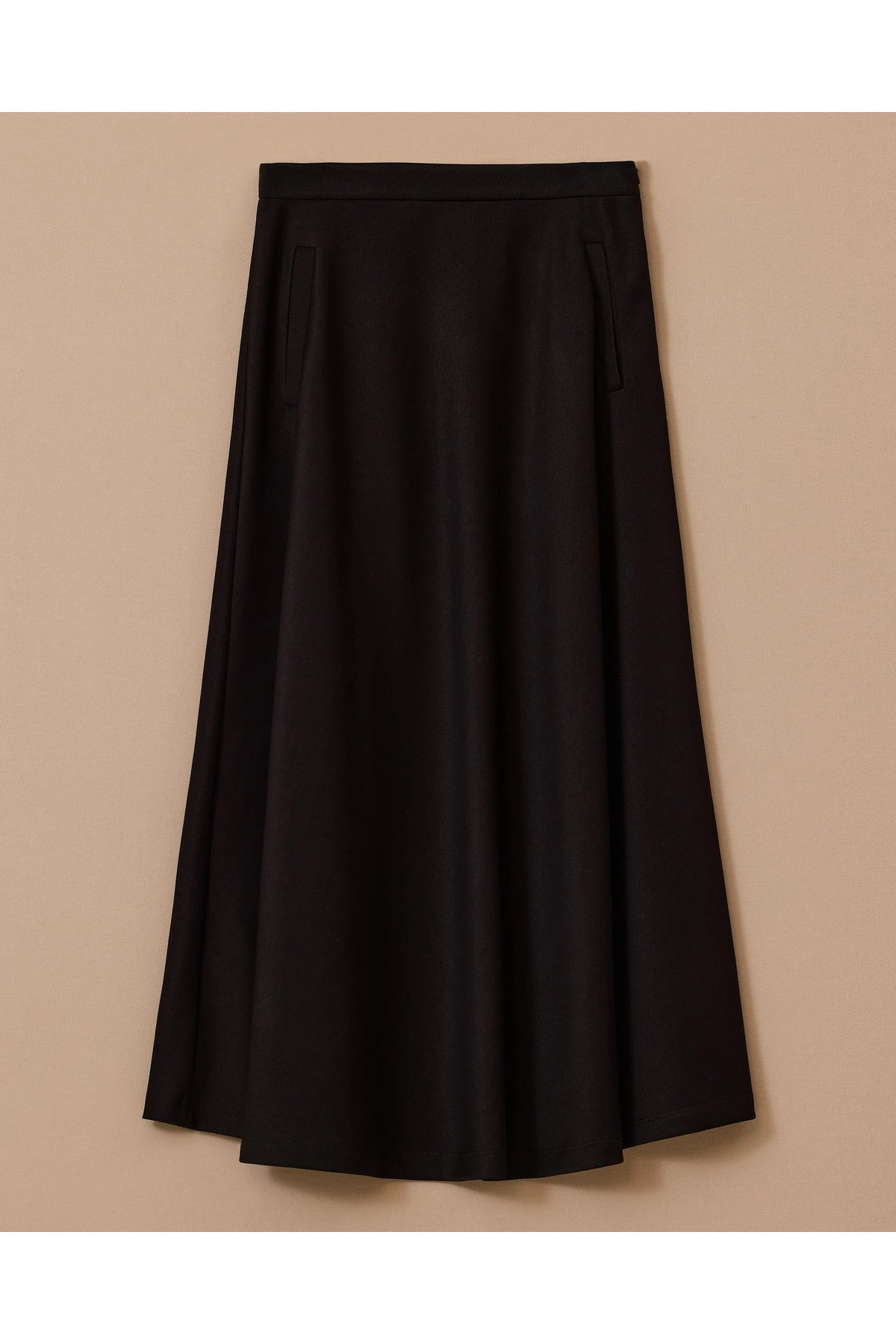 The Basic Flared Long Skirt offers both comfort and timeless elegance with its simple design and flowing flared cut.