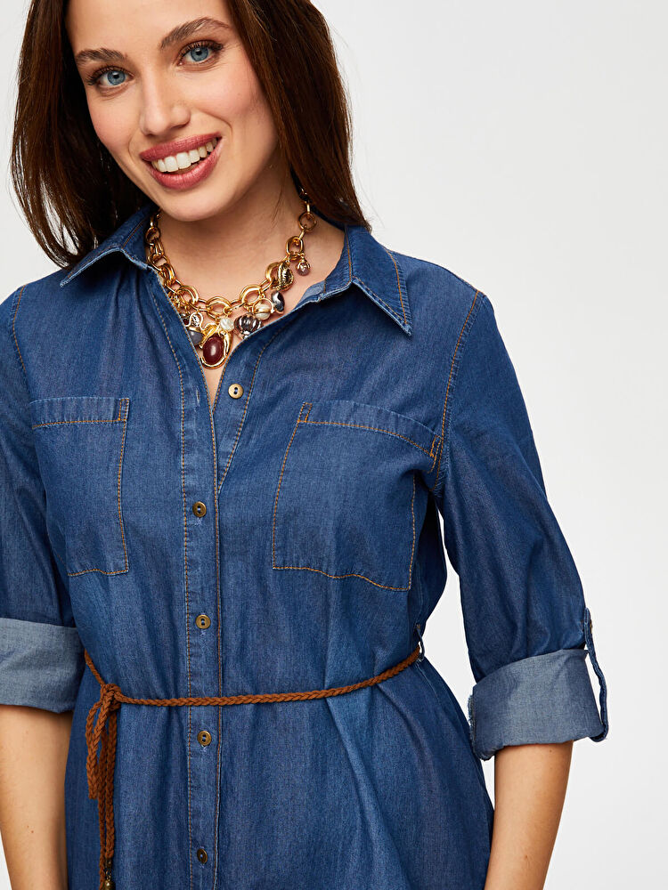 Belted Shirt Collar Denim Dress by Faik Sönmez