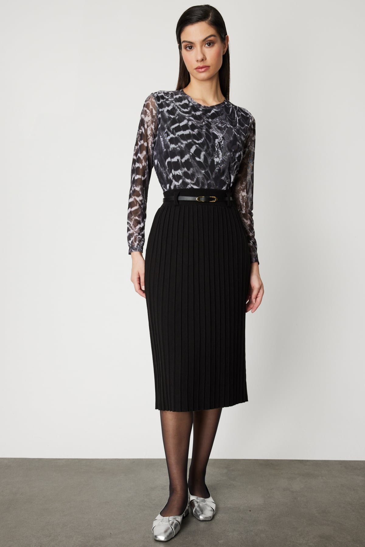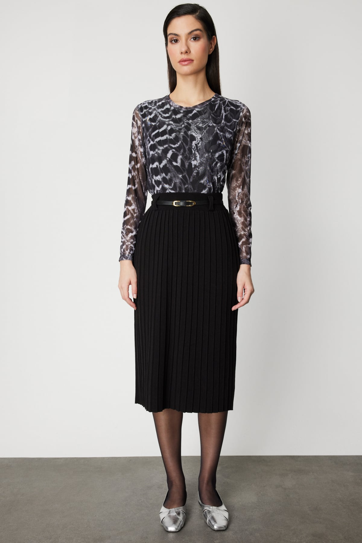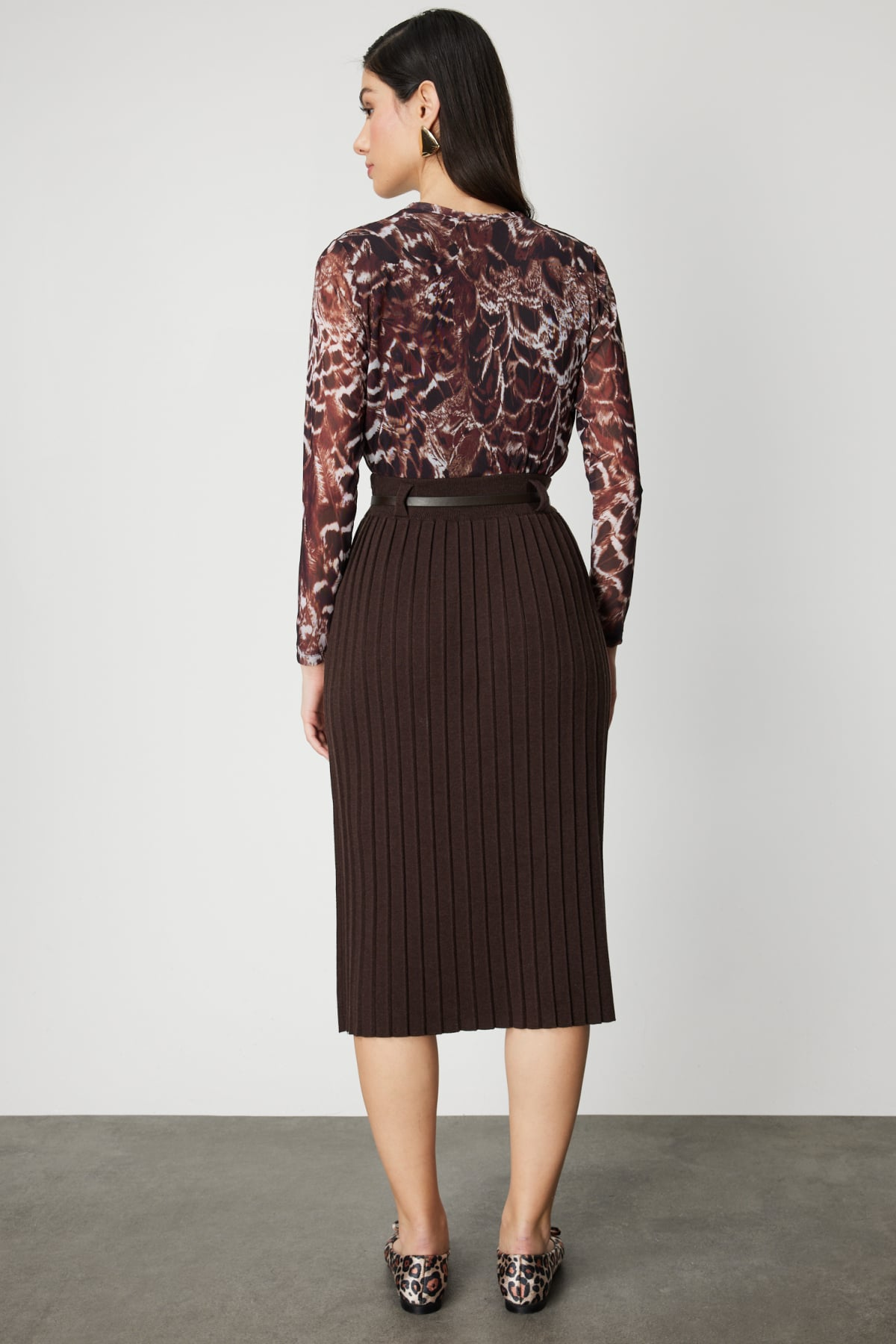 Belted Midi Length Knitwear Skirt On