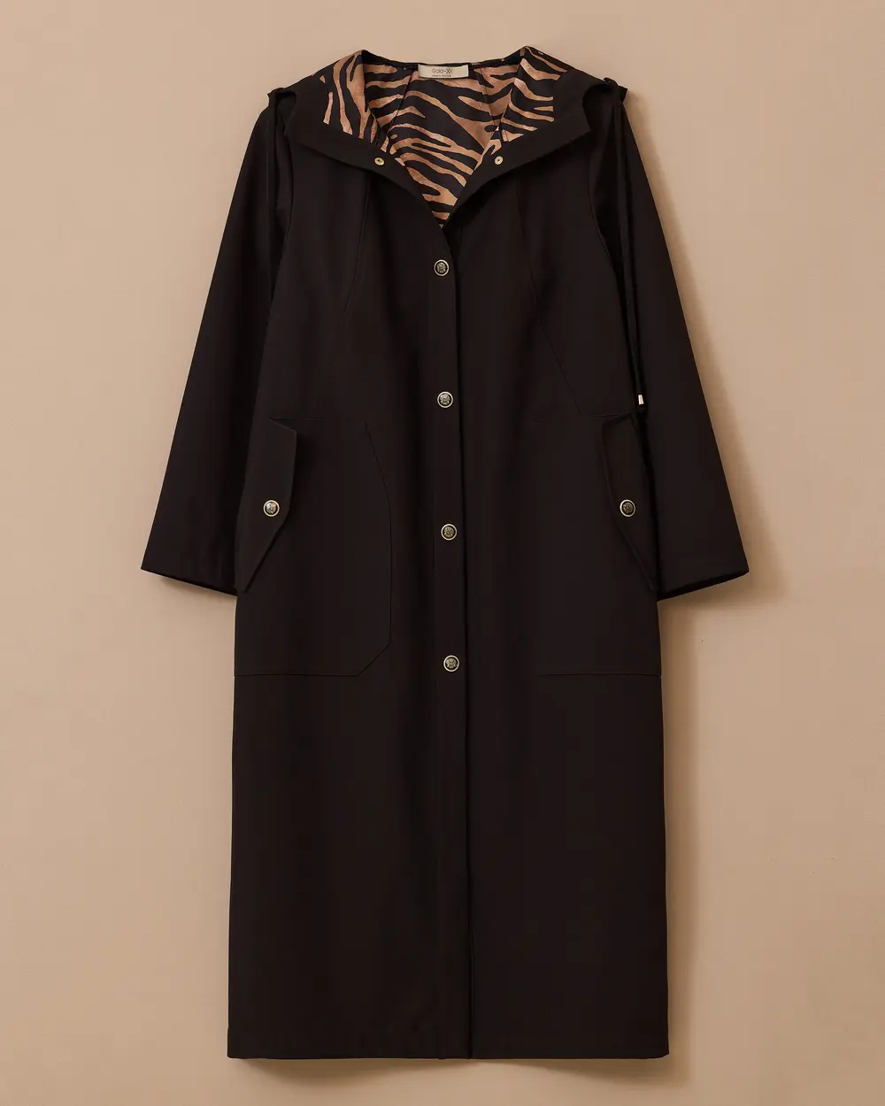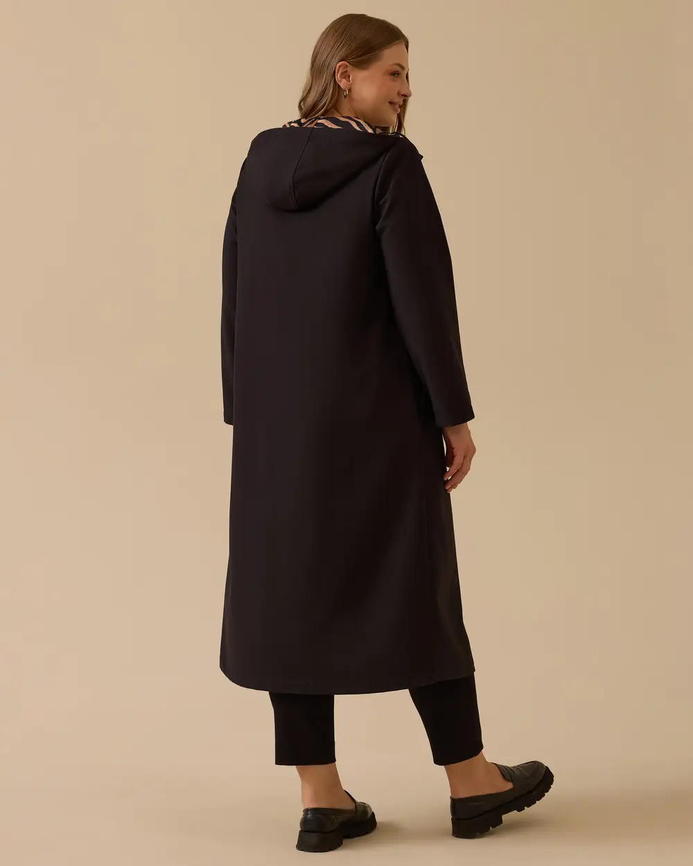 This plus-size lined trench coat with pockets combines style and comfort with its relaxed fit and practical pockets.