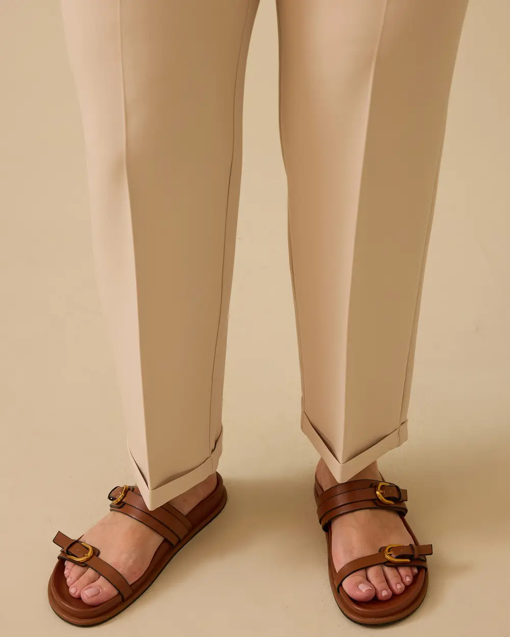 These plus-size, double-hem trousers with adjustable waist and stylish hem offer a comfortable look.