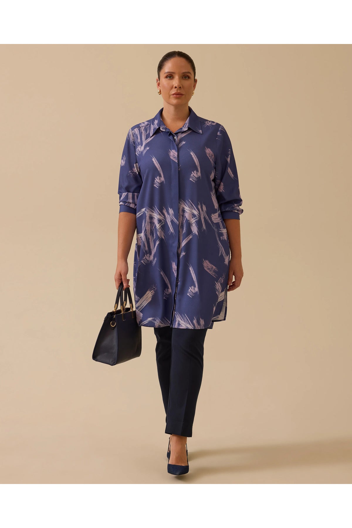 This plus-size patterned long-sleeved shirt offers all-day comfort with its lightweight construction and stylish design.