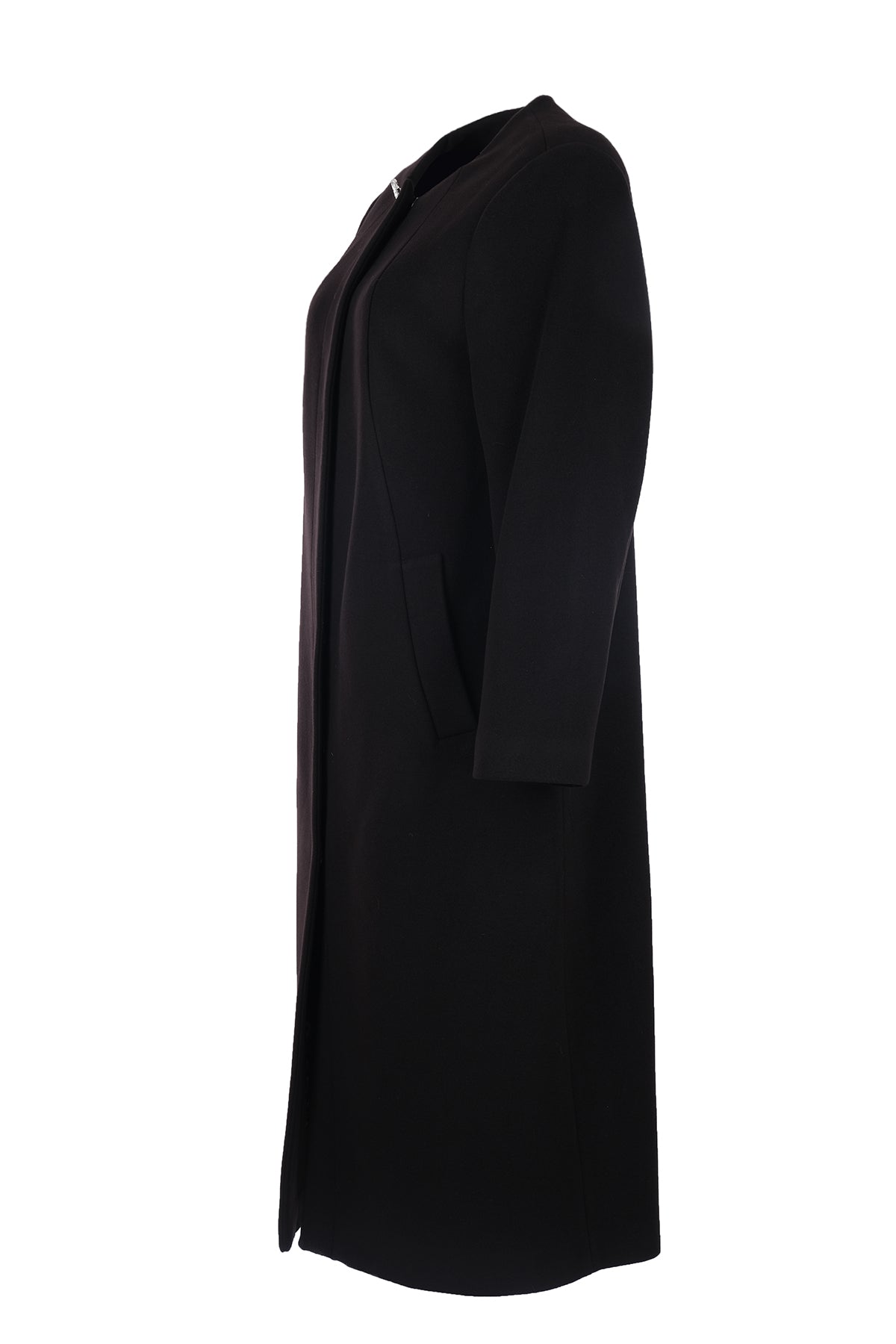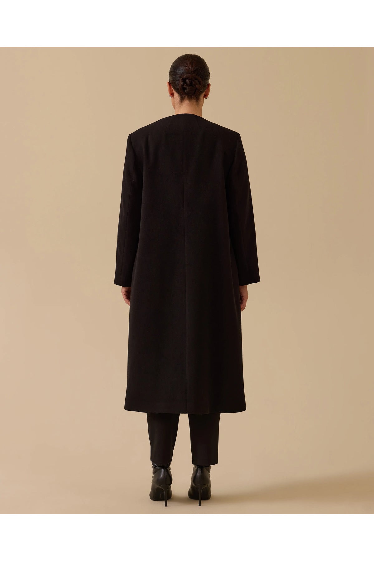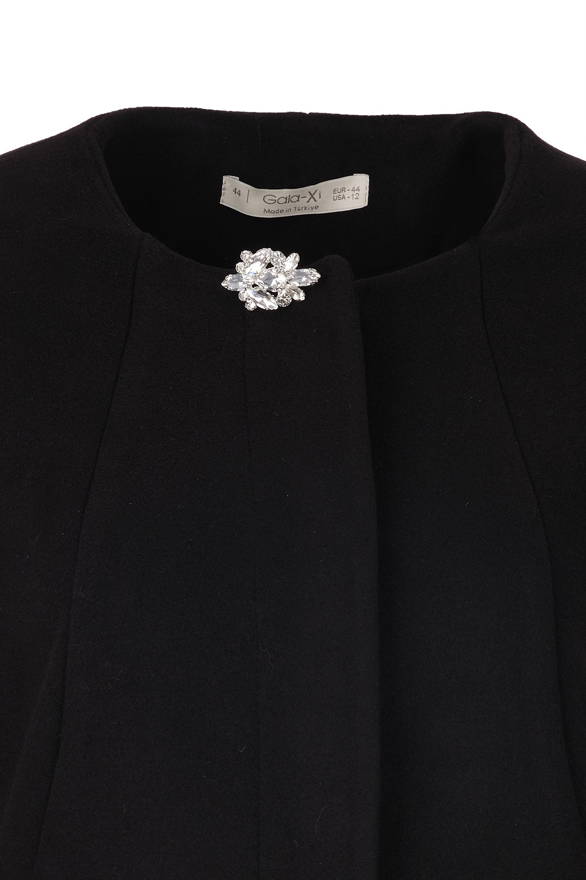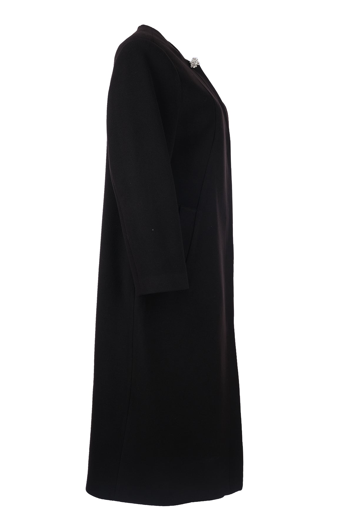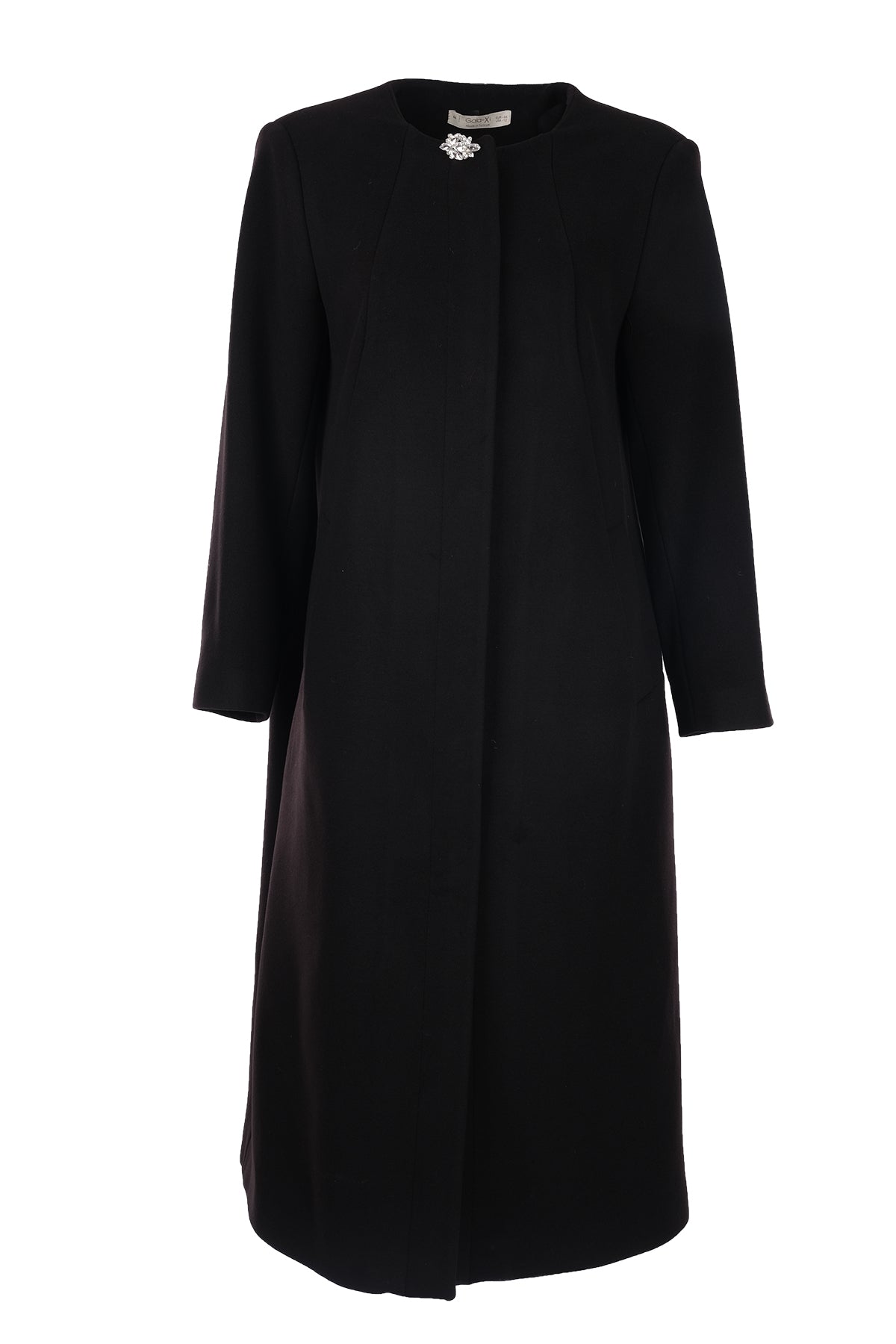 This plus-size , long cashmere coat with embellished details features delicate stones that add a touch of elegance.
