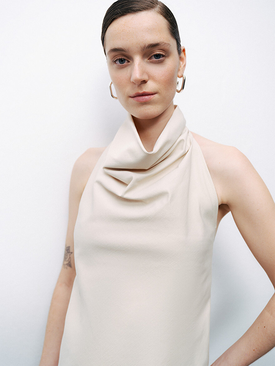 Product Description: Regular fit, true to size, unlined, woven, sleeveless, snap button closure at the neck, button detail and V-neckline blouse at the back.
