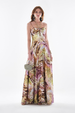Patterned Thick Satin Maxi Evening Dress with Chain Detail - Explosion