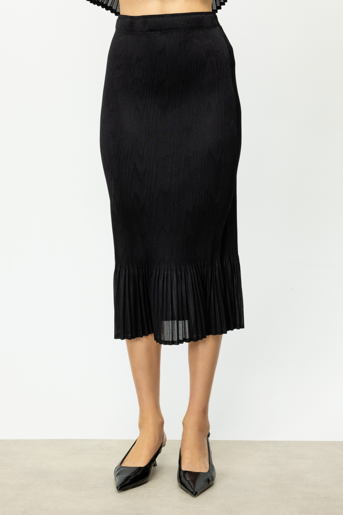 Product Features: Elasticated waist, accordion fabric, midi length, pleated hem, unlined.
