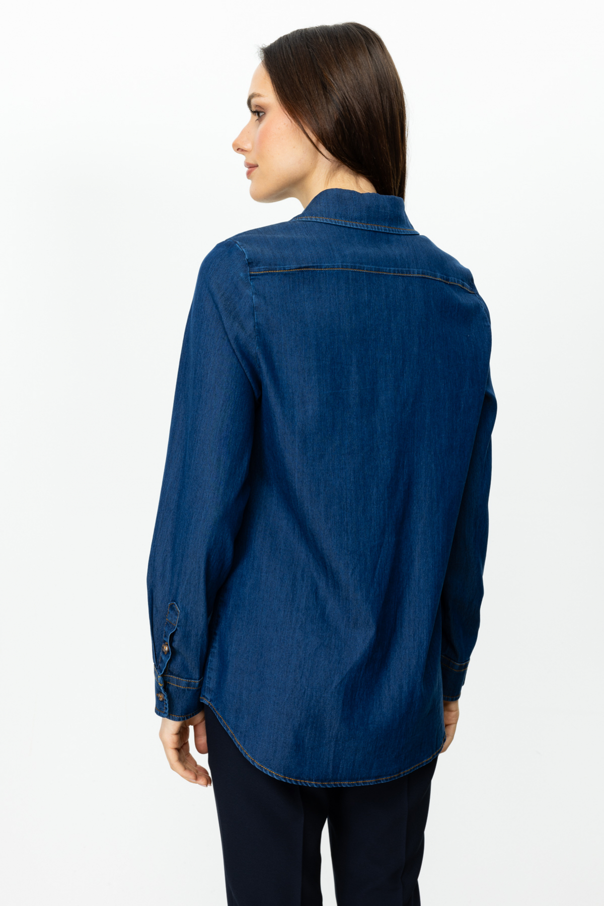 Product Features: Shirt collar, long sleeves, bust darts, butterfly embroidery.