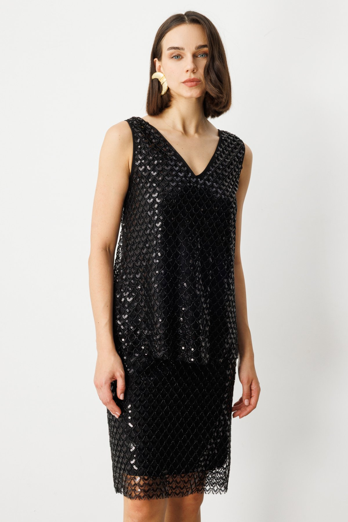 Ekol V-Neck Sleeveless Midi Sequin Blouse - Everyday & Special Occasions