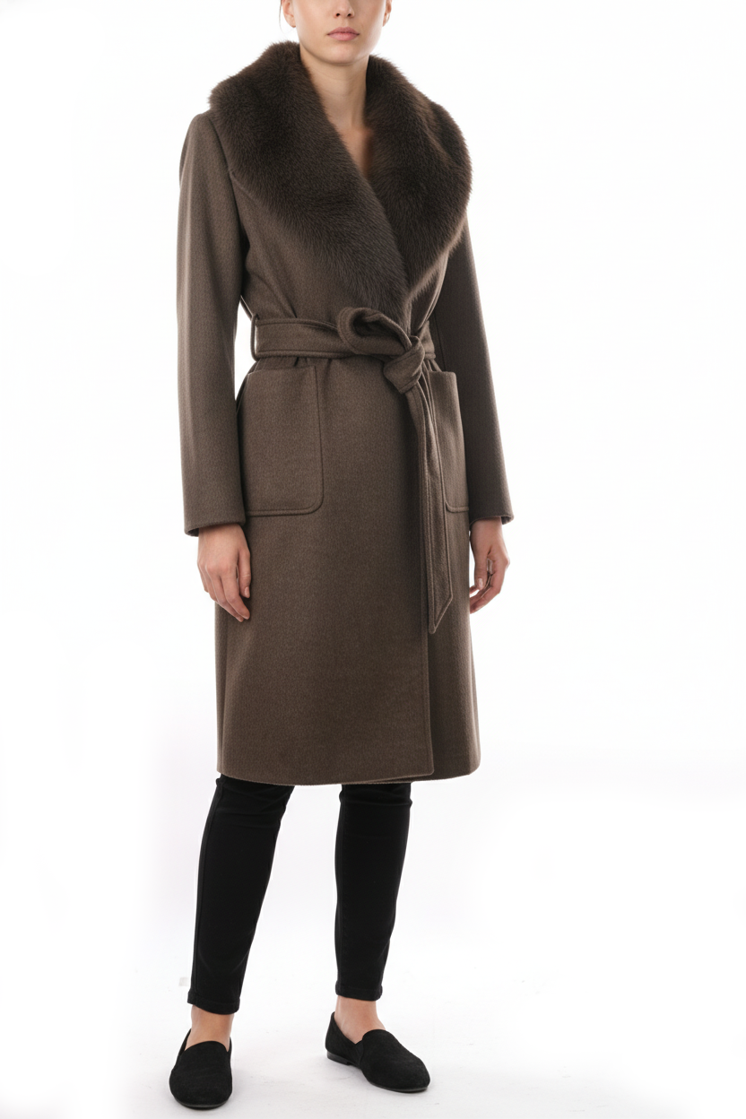 Ekol Fur-Trimmed Collar Coat with Patch Pockets