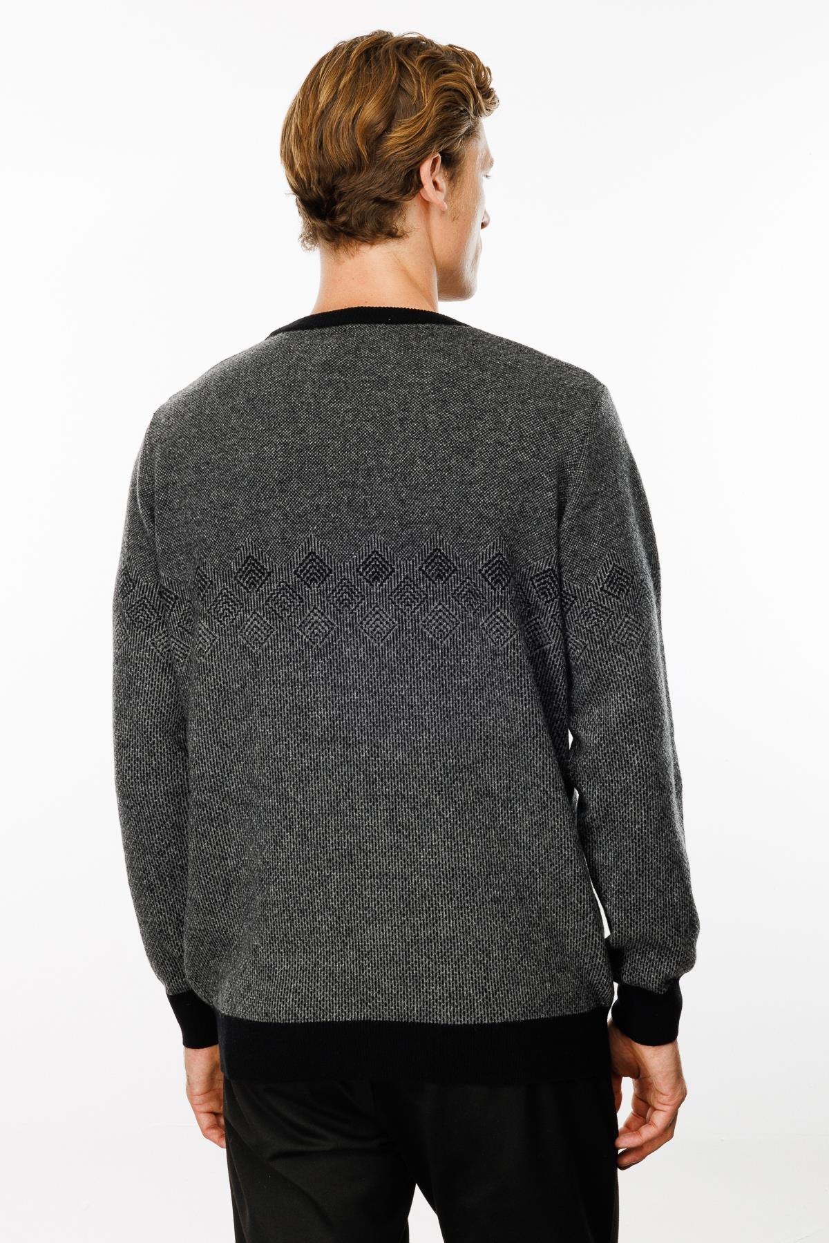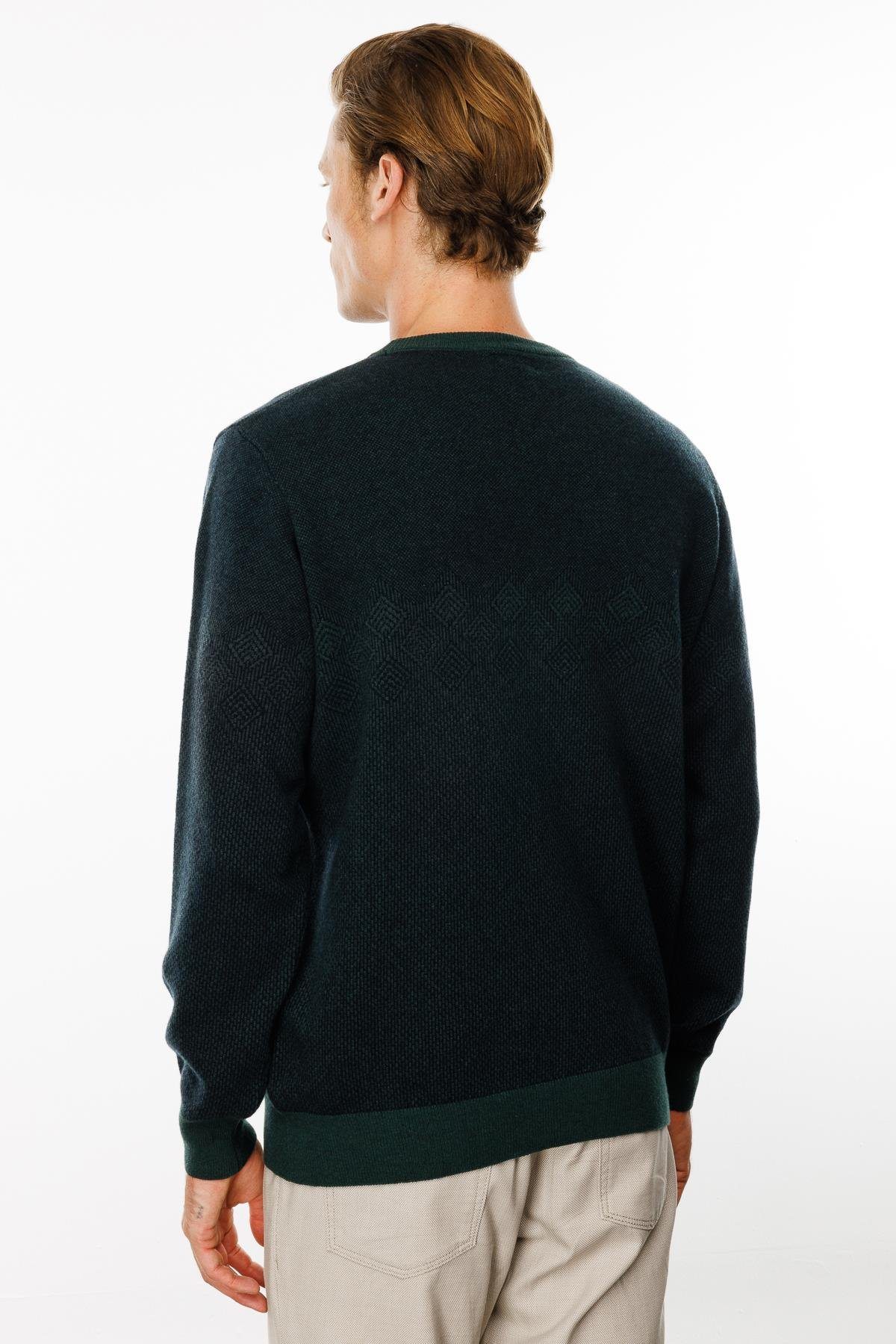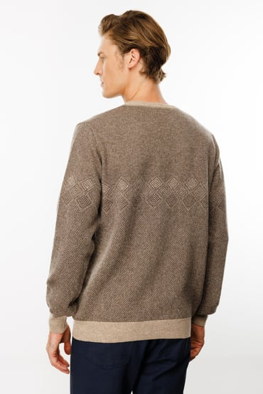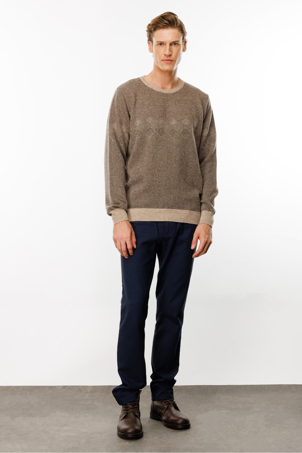 Men's Crew Neck Wool Sweater with Diamond Pattern on the Chest