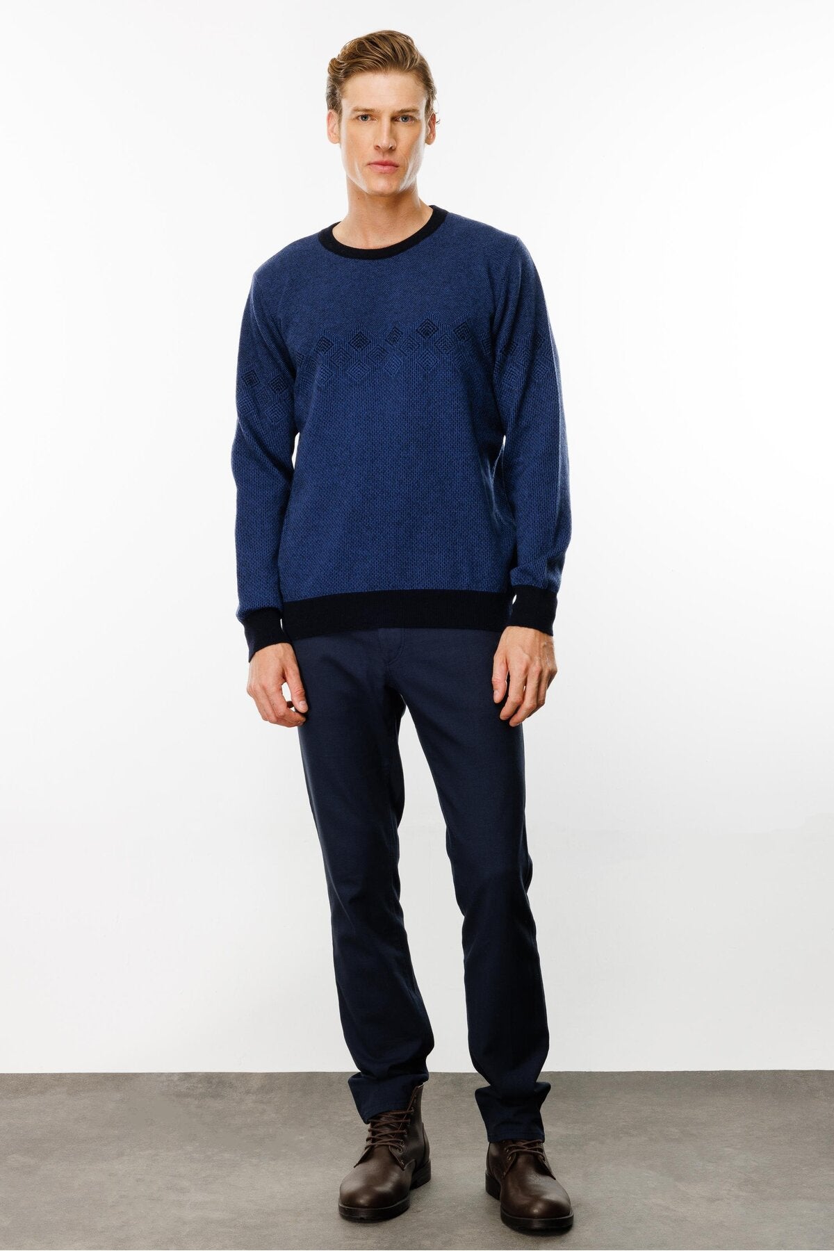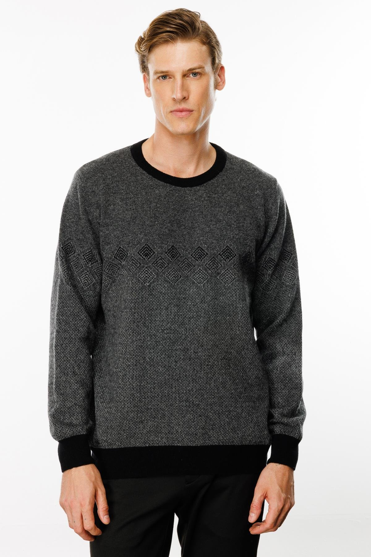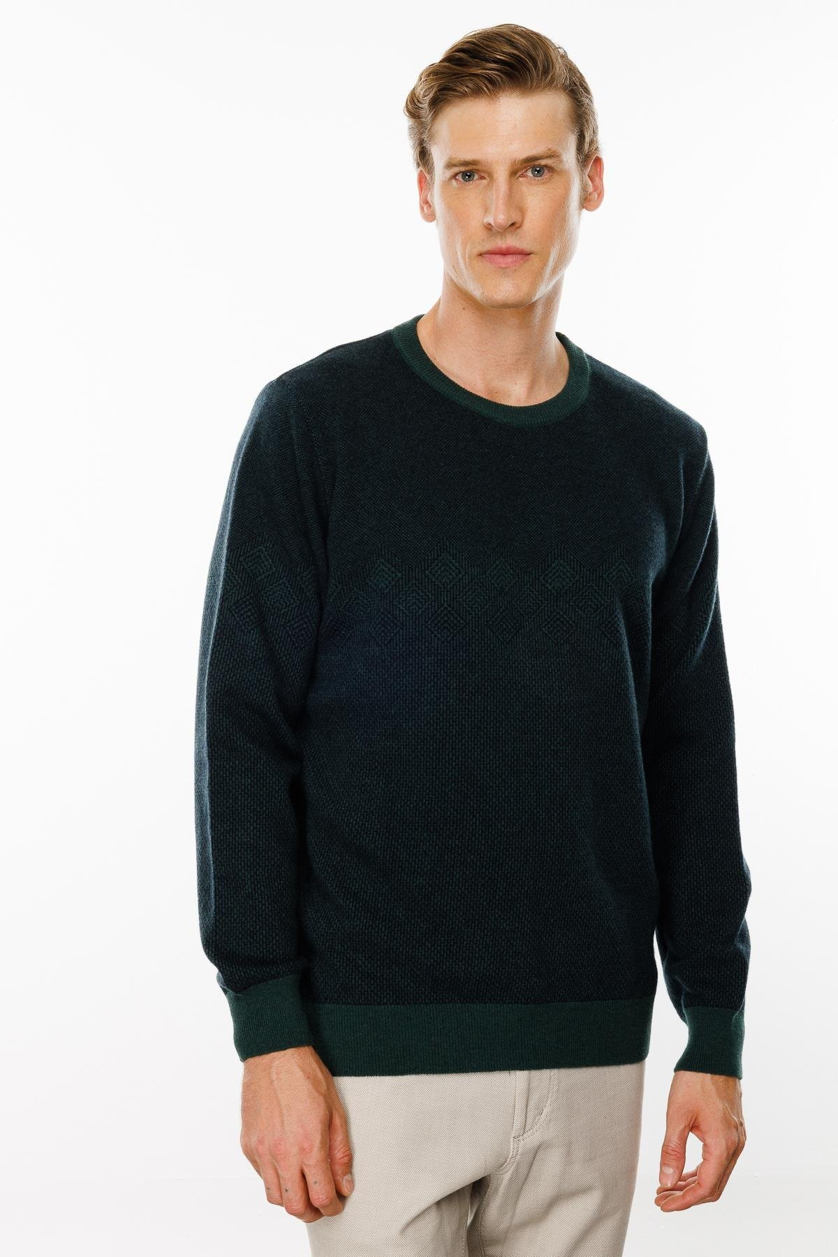 Men's Crew Neck Wool Sweater with Diamond Pattern on the Chest