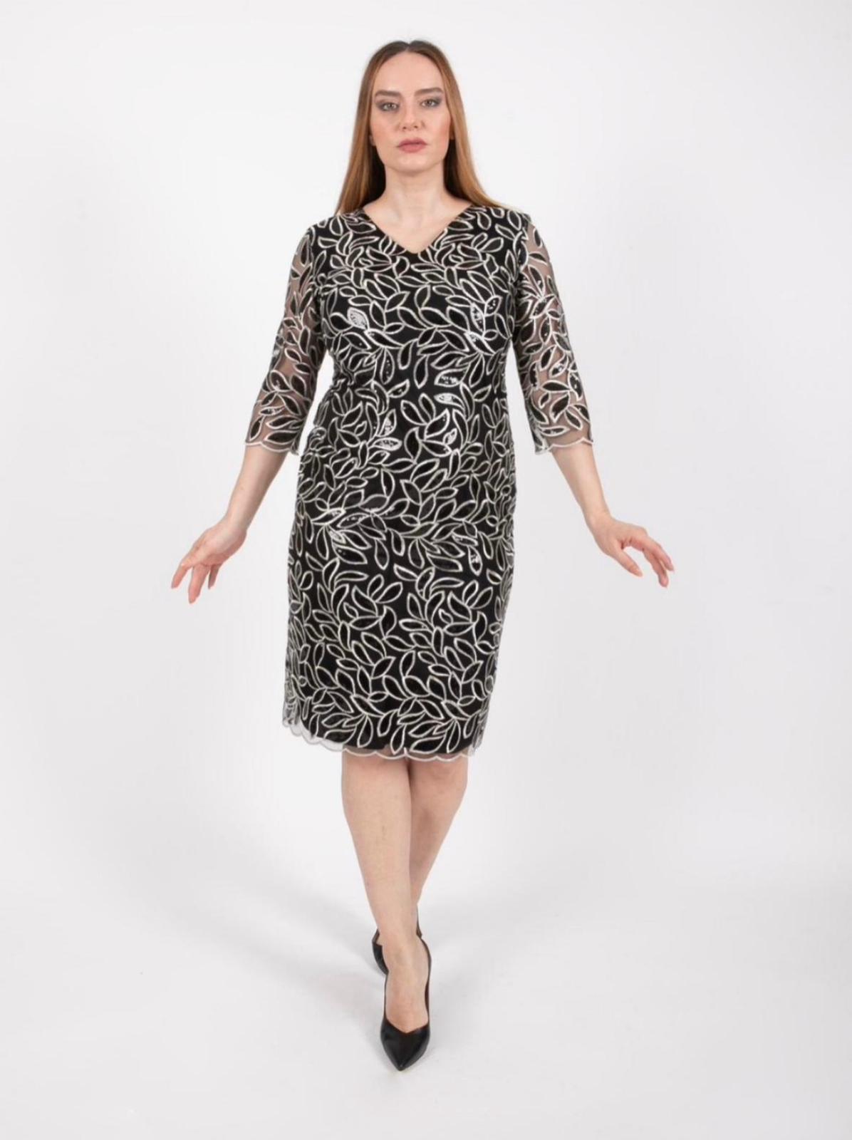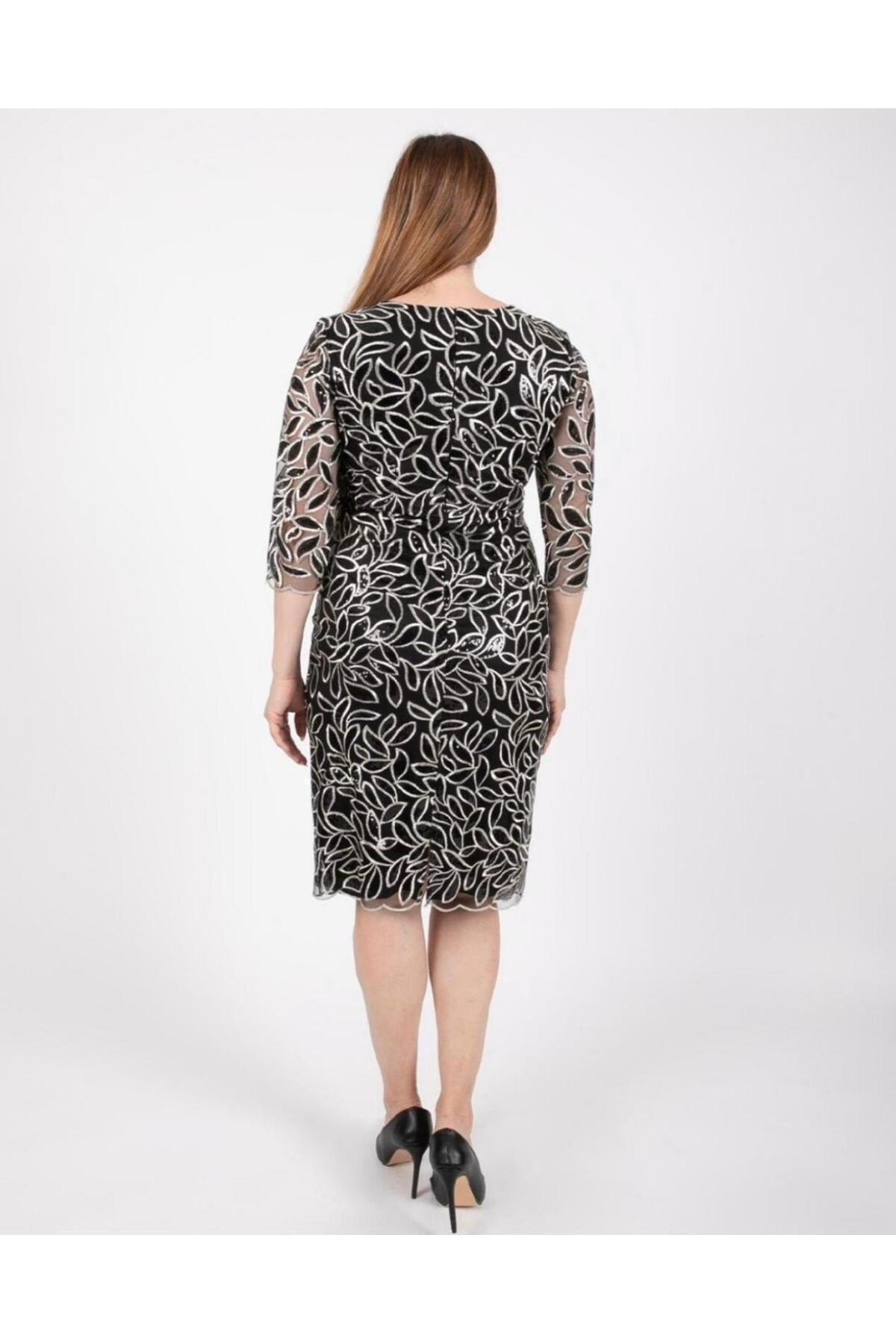Ezze Women's Leaf Pattern Evening Dress 25YEZ4296