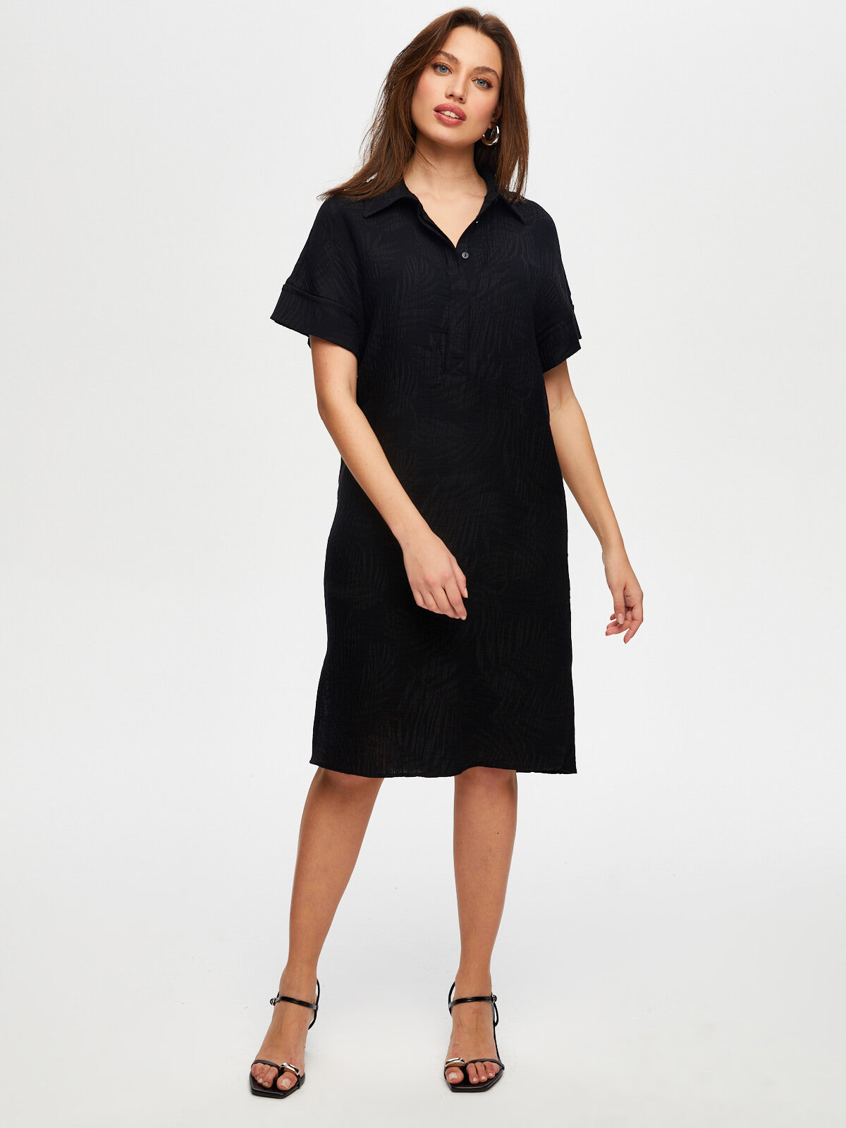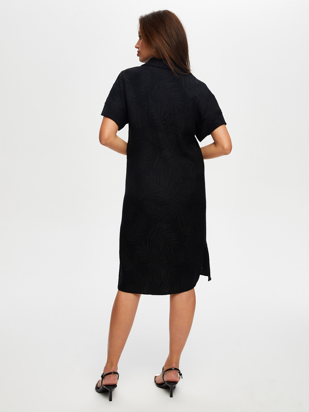 Product Name: Leaf Patterned Self-Textured Short-Sleeve Dress S25ELB010