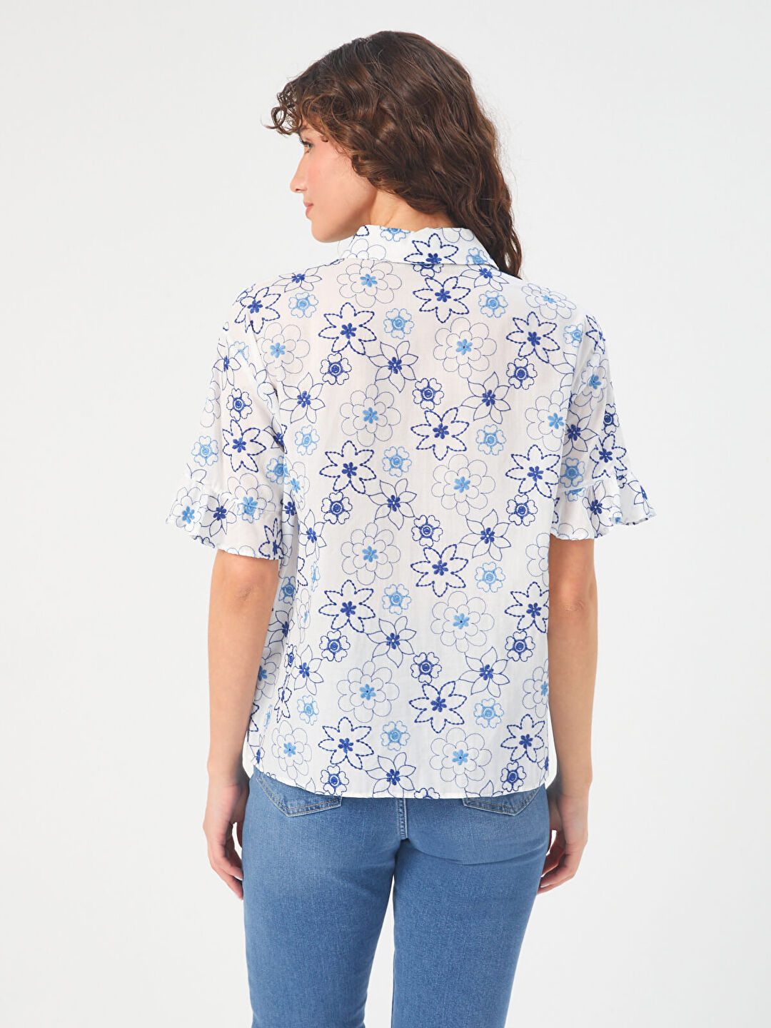 Faik Sönmez Women's Embroidered Short-Sleeve Poplin Shirt U68189 100% Cotton
