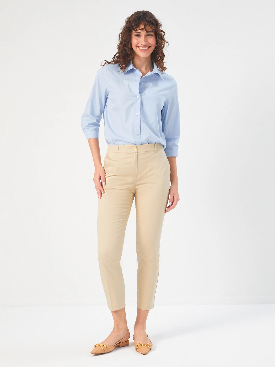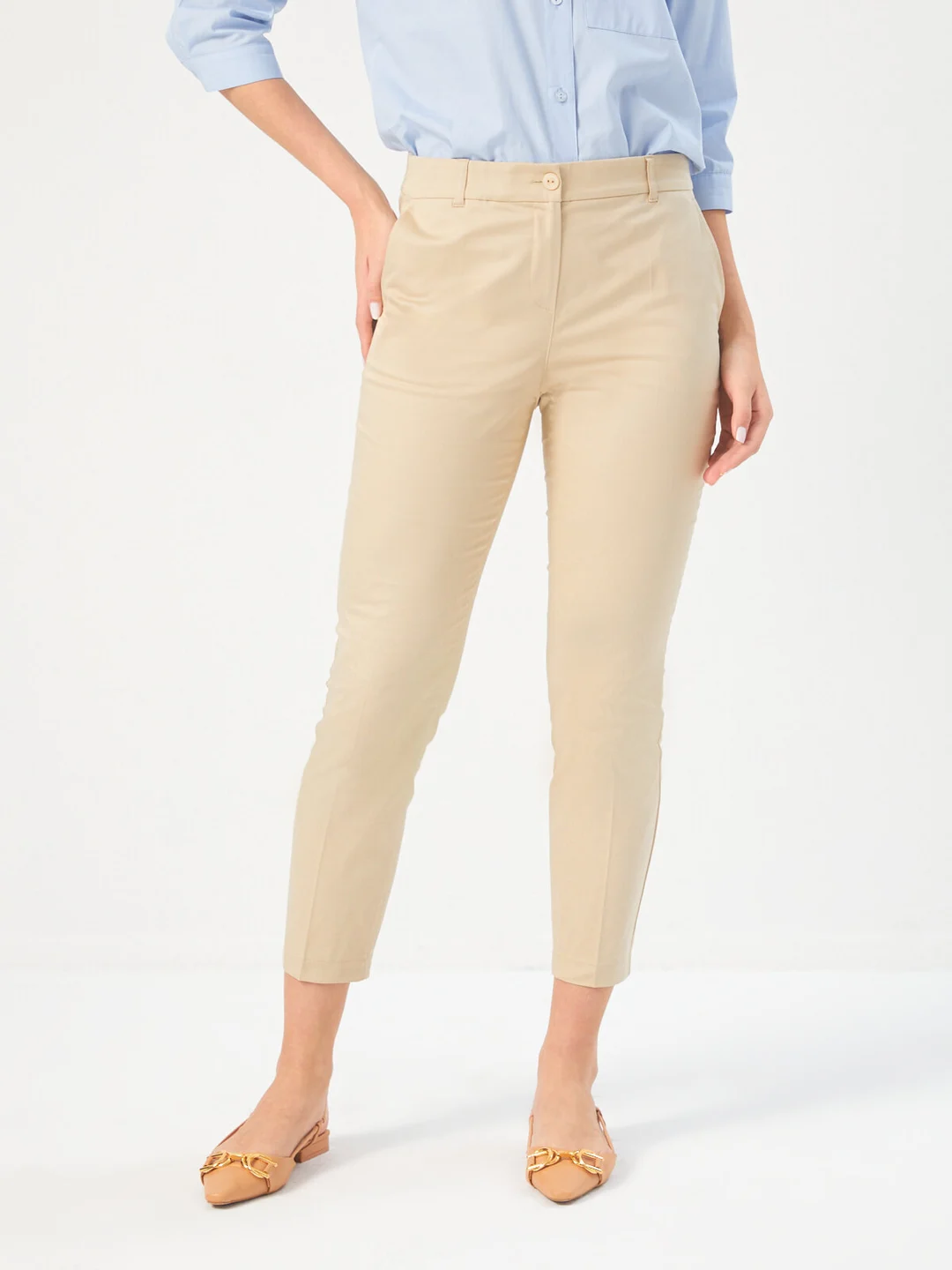 Product Name: Straight Fit Cotton Trousers with Elastic Waistband 68533