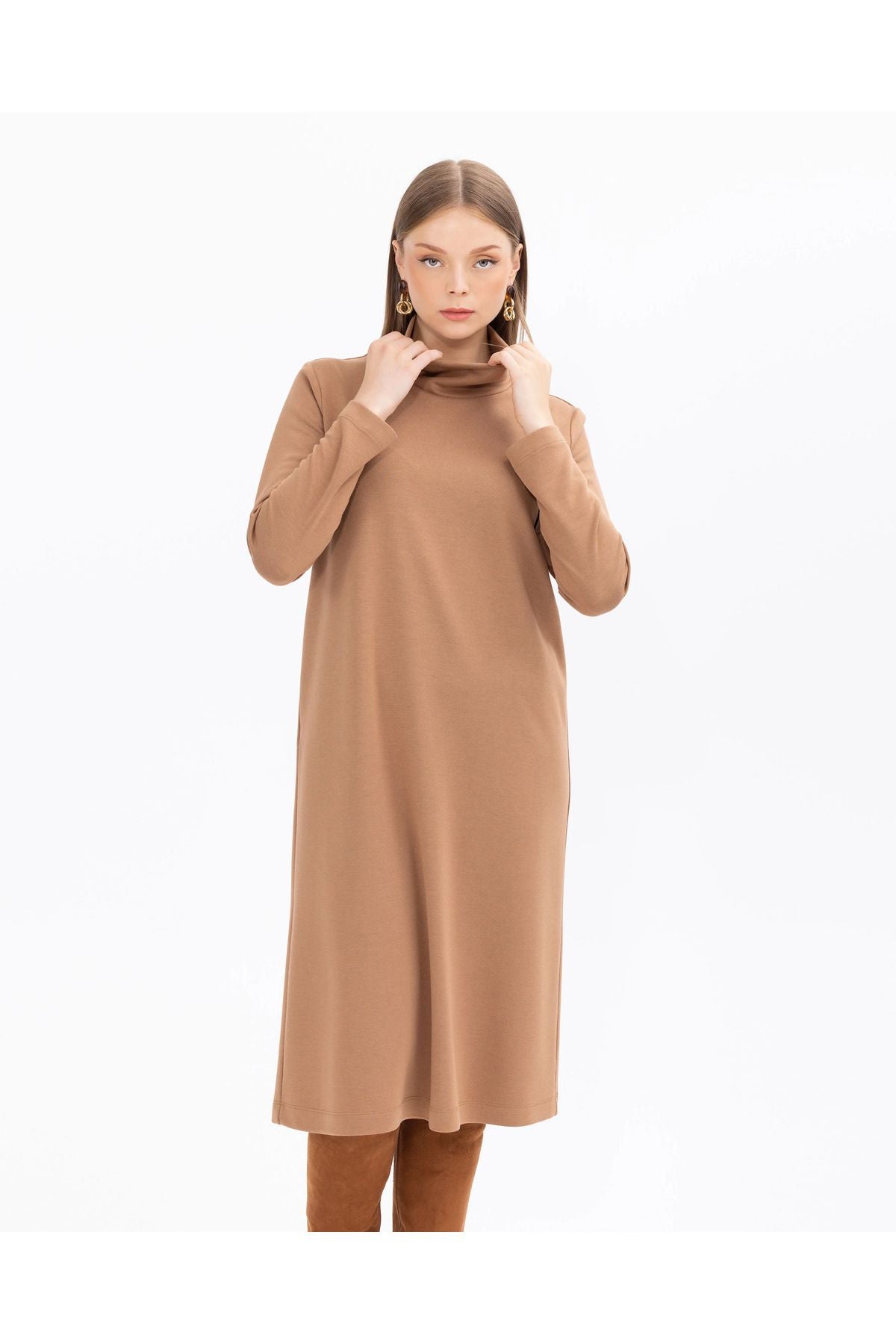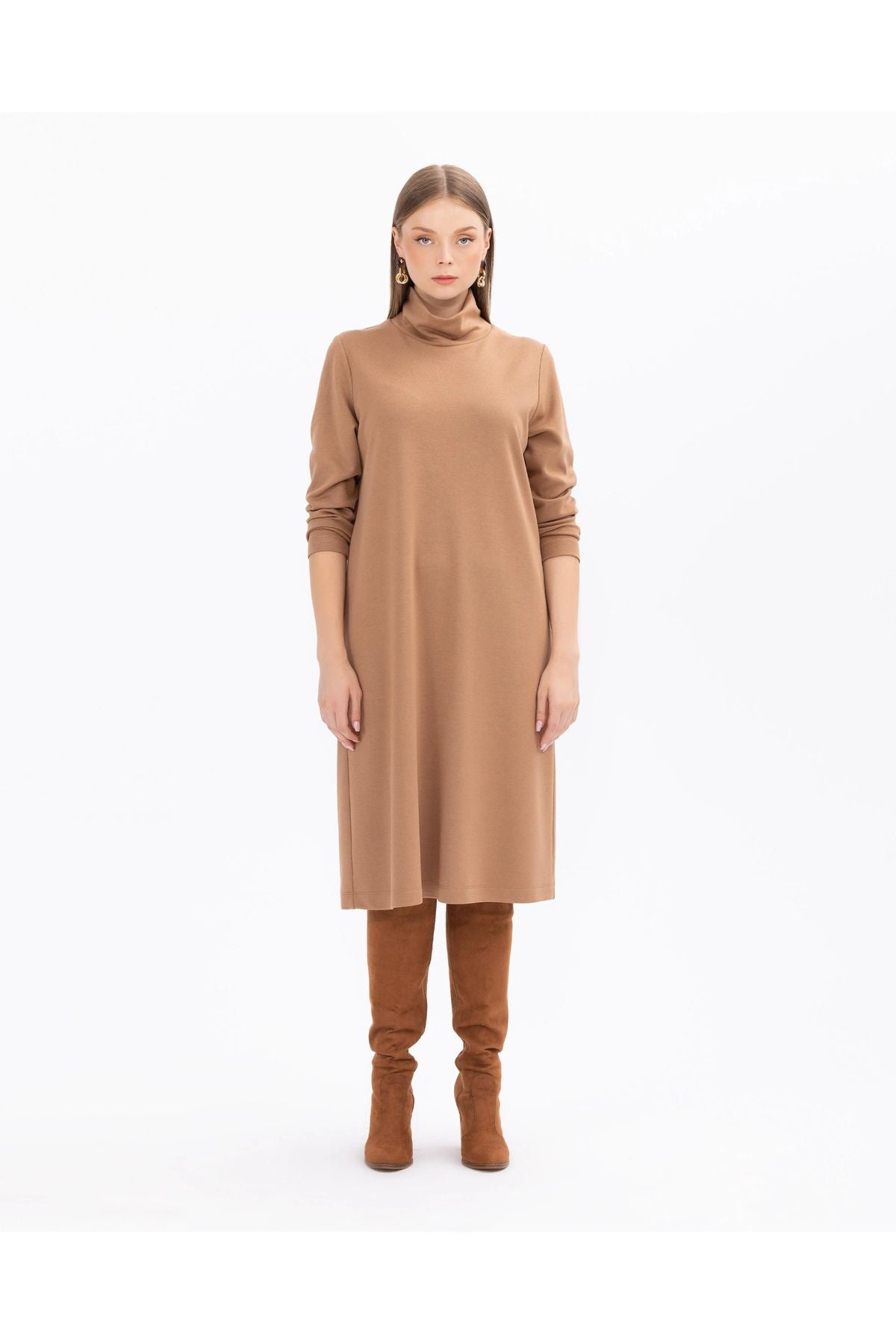 This plus-size knit dress offers an ideal option for everyday wear with its relaxed fit and simple design. The knit fabric provides a comfortable and flexible wearing experience. A classic and versatile piece, this dress can be easily combined with different accessories, allowing you to express your style. Product Features: Knee Length; Long Sleeves; Set-in Sleeves; Relaxed Fit; Knit; Straight Form; Fabric Composition: 20% Polyester; 10% Elastane; 70% Viscose;