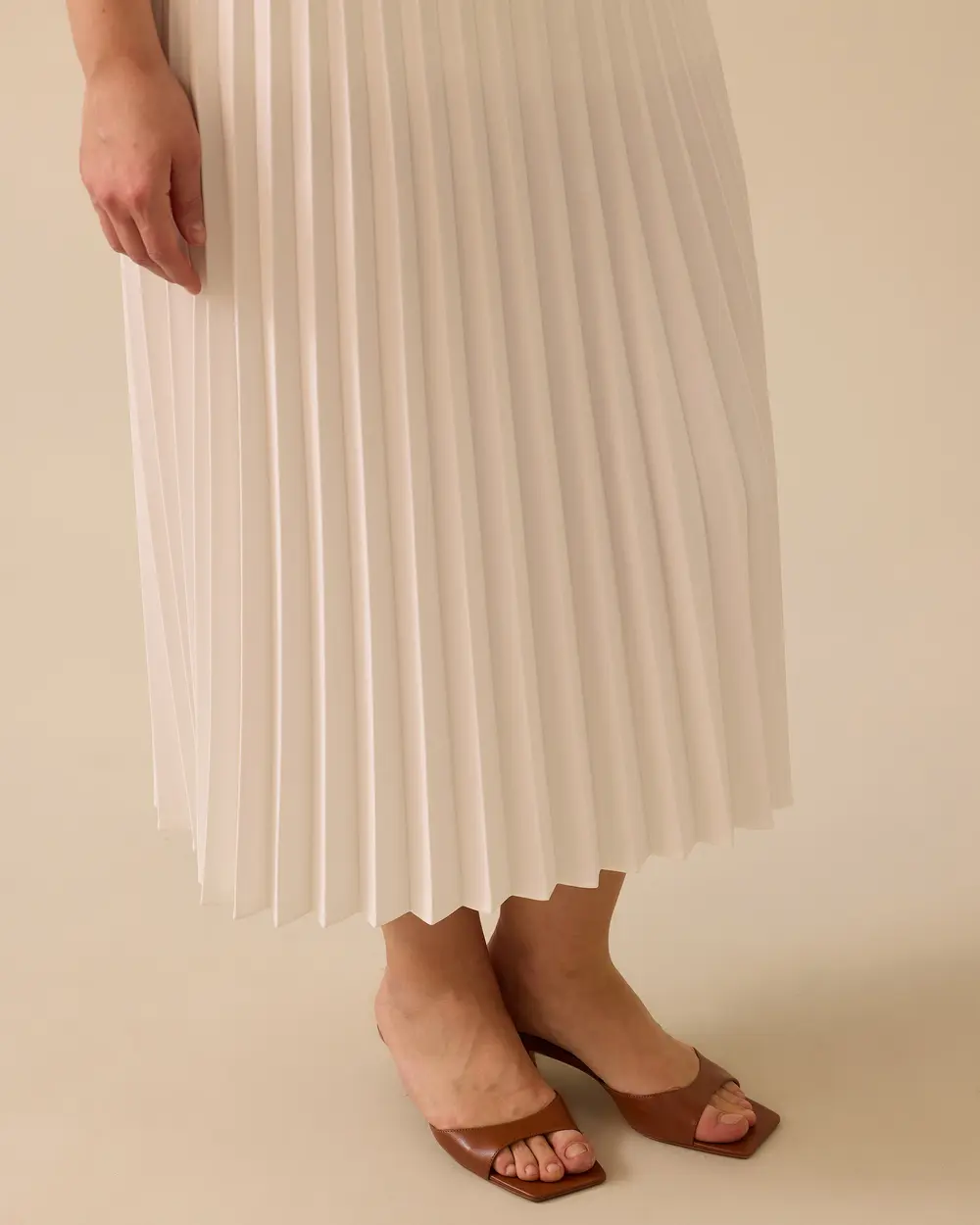 This plus-size pleated midi skirt offers a dynamic and stylish look with its elegant pleat details. The elastic waistband ensures comfortable wear.