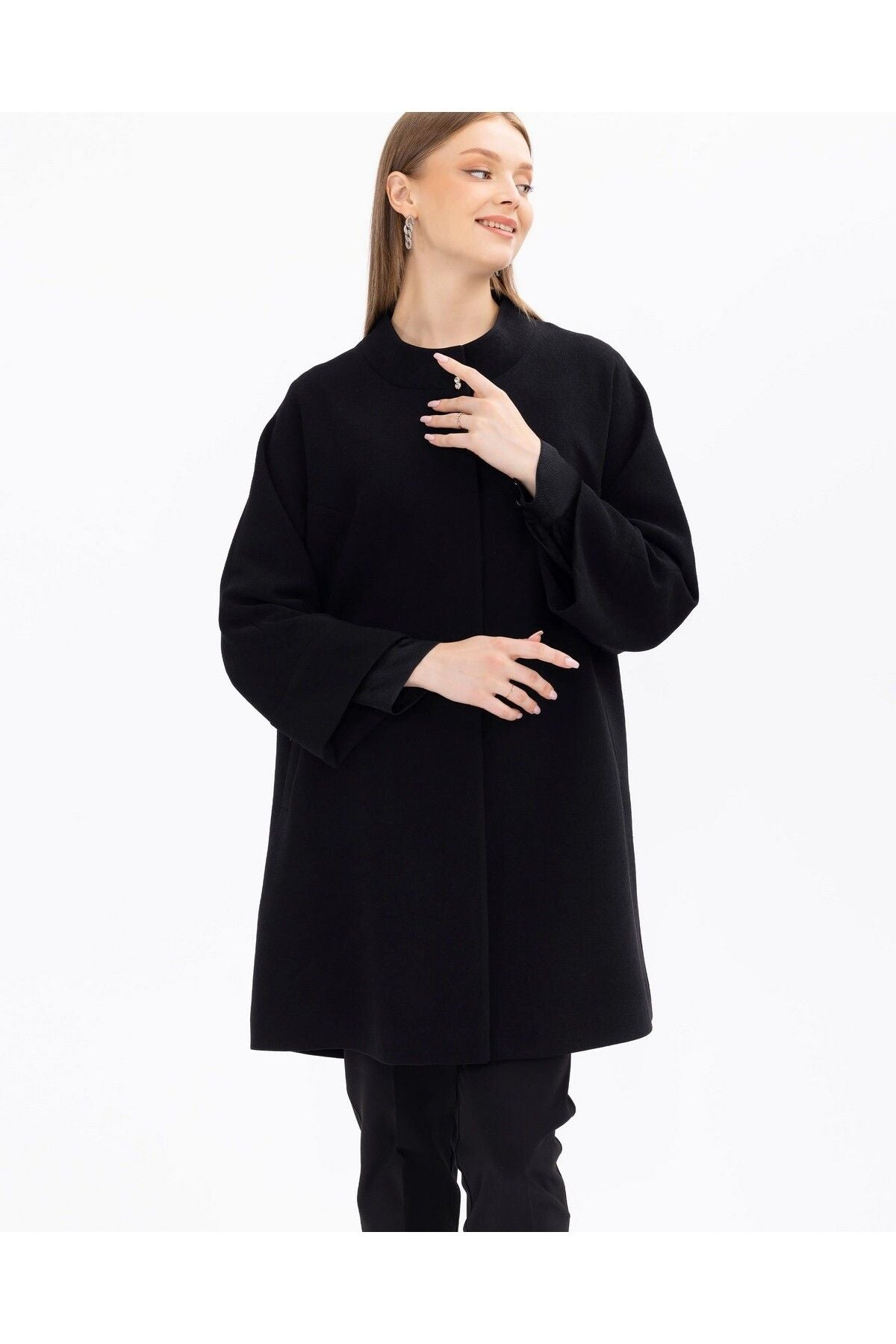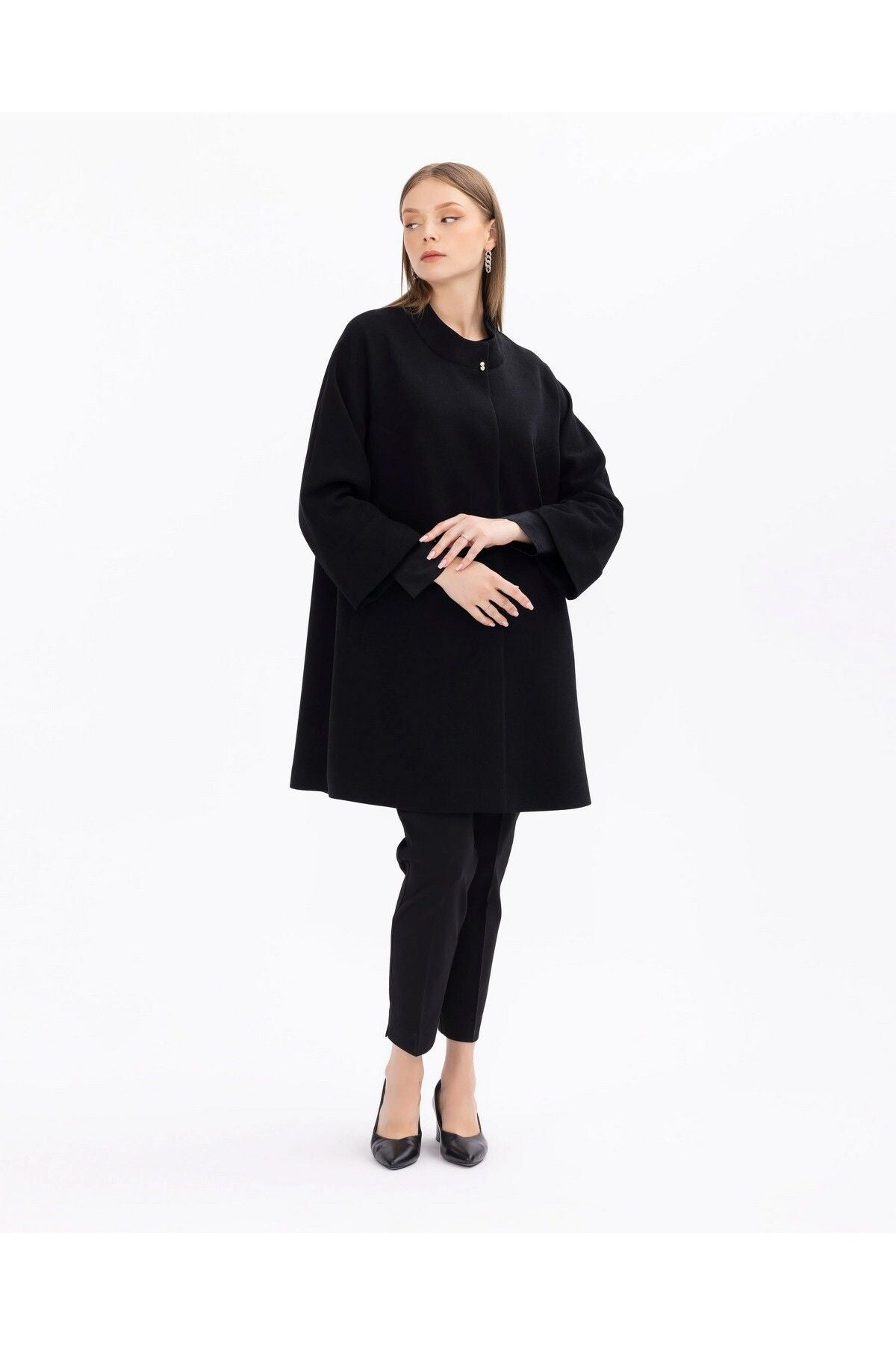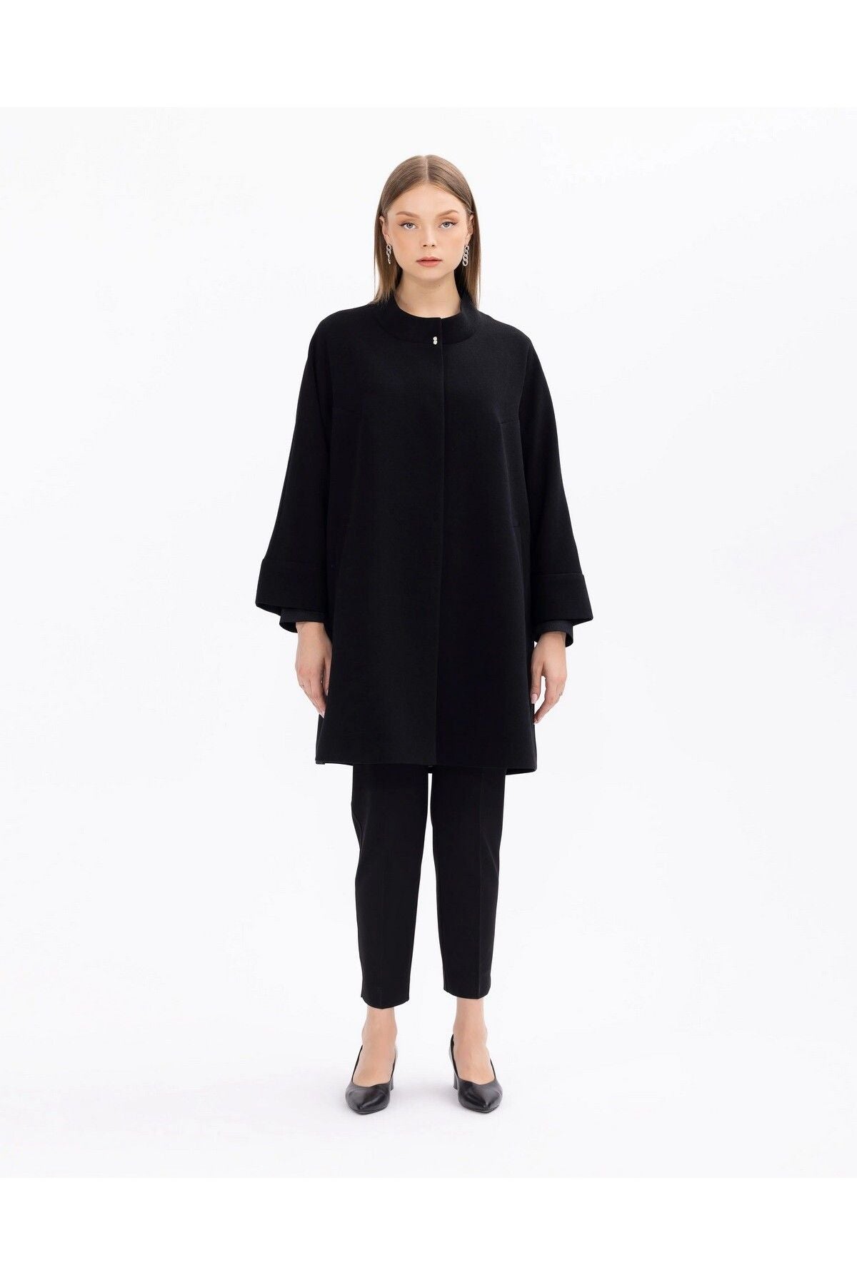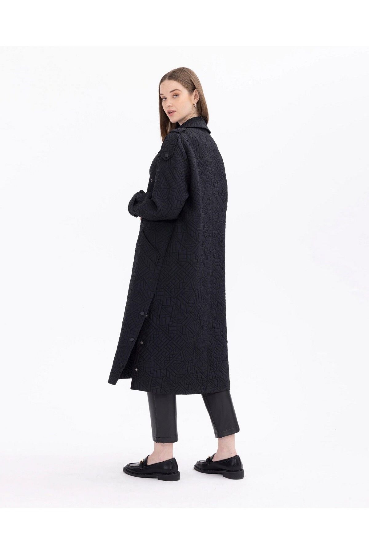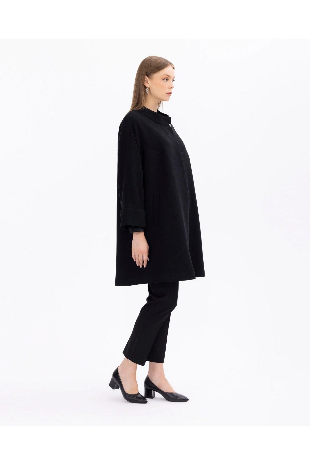 Shirt Collar Midi Length Cap with Pockets offers both a functional and stylish choice. While the shirt collar offers a classic stance, the midi length gives an aesthetic appearance. You can show off a modern and sophisticated style with the cap, which is among your indispensable items in daily life, with its large pockets designed for practical use; Product features Shirt Collar Midi Size with pocket Lined with snap buttons Fabric Content 98 Polyester 2 Elastane Model Dimensions Sample Size: 38 Model Height 178 Dimensions: 83 / 61 / 90