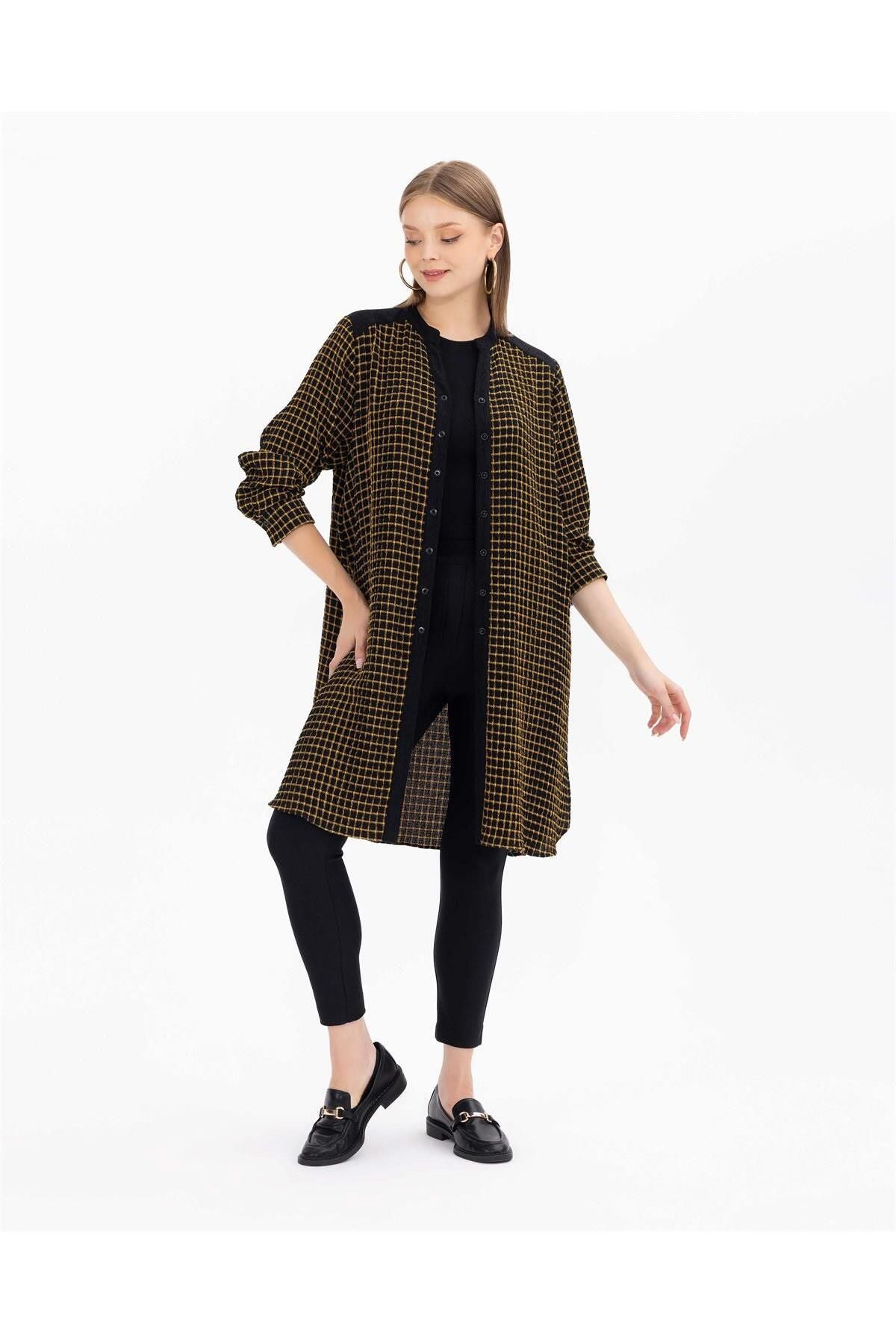 This plus size tunic offers both a stylish and comfortable option with its checkered pattern and seersucker fabric. Its fine details and wide cut provide the perfect style for every occasion, from daily wear to special moments. Ideal for those looking for elegance and comfort in plus size clothing.:; Product features:; Tippet; Long arm; Artificial Arm; Straight Cut; Size Below Hips; Plaid; seersucker; Flat Form; Fabric Content: 20 Acrylic 20 Viscose 60 Polyester; Sample Size: 44; Model Height 180; Dimensions: 102 / 80 / 104;