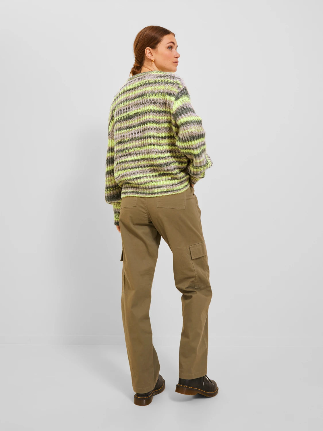 PRODUCT DESCRIPTION:; A warm knit for cold winter days.; Color classification.; - Product Type: Knitted sweater; - Neck: O-Neck; - Sleeve: Long sleeves; - Arms: Dropped shoulders; - Length/size : Normal; FABRIC COMPOSITION AND WASHING INSTRUCTIONS:; 65% Acrylic, 35% Recycled Polyester;