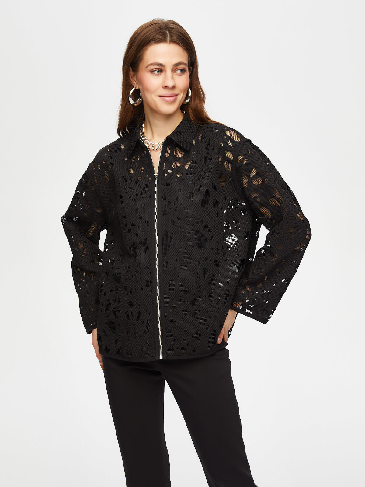 Women's Self-Jacquard Relaxed Fit Unlined Jacket by Faik Sönmez