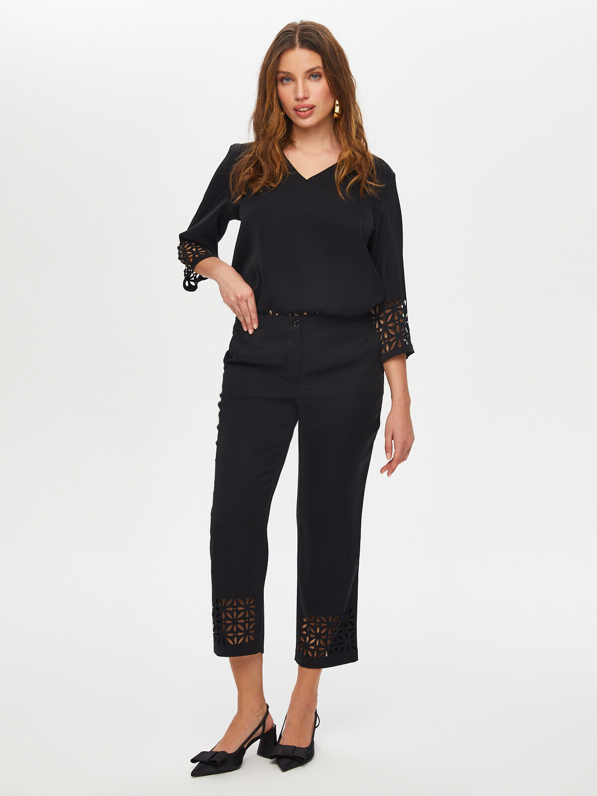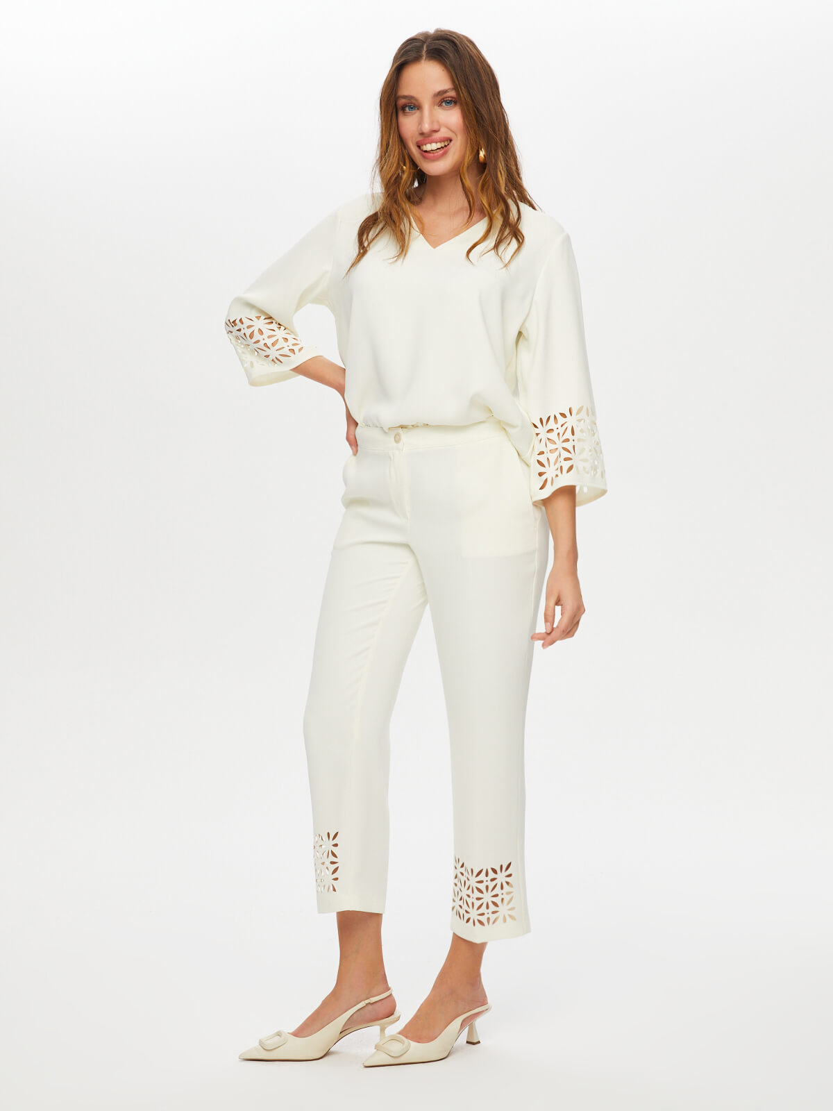 Women's Slim Fit Trousers with Holes in the Hem - Faik Sönmez