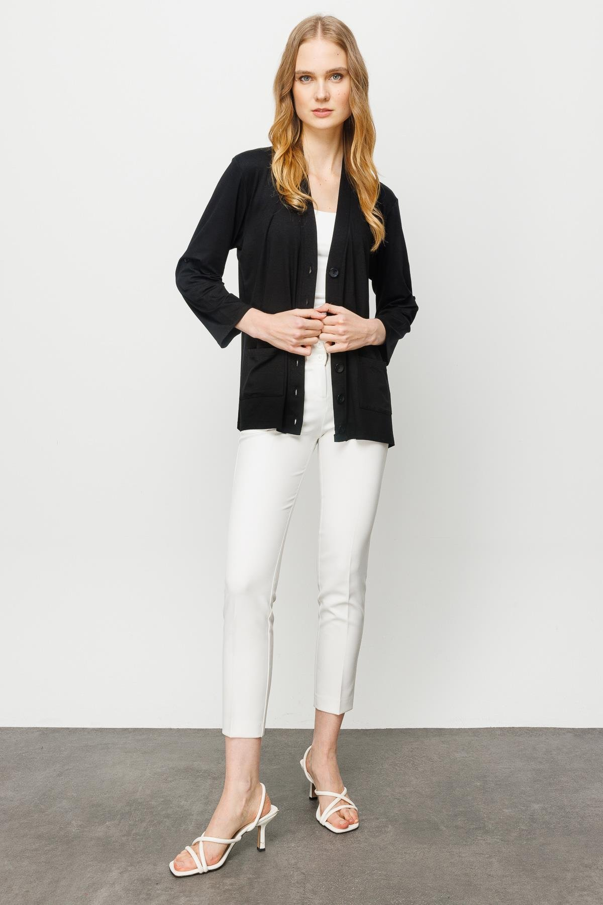 Women's V-Neck Long Sleeve Pocketed Buttoned Cotton Jacket Pattern