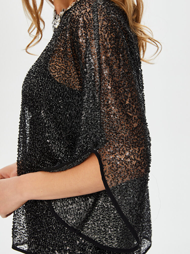 Sequin Evening Blouse with Sleeve Slit Detail by Faik Sönmez