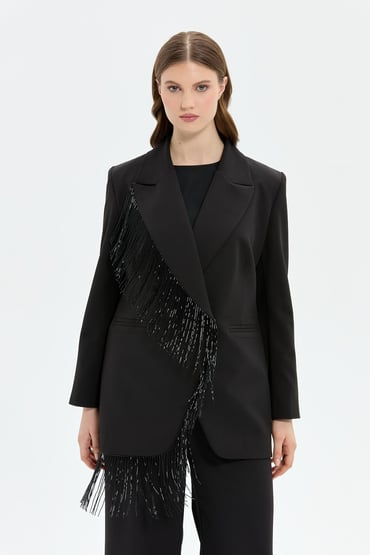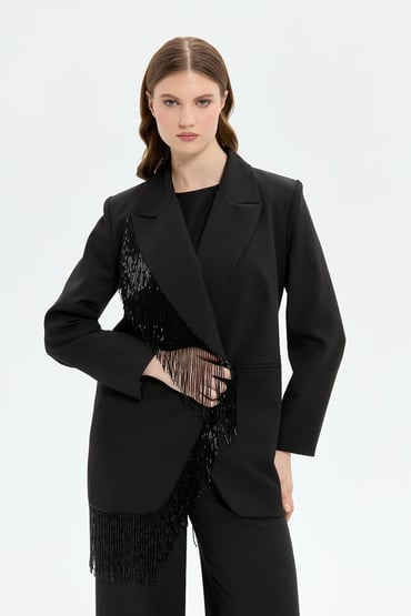 Müsemma Plus Size Elegant Suit with Tassel and Sequin Details