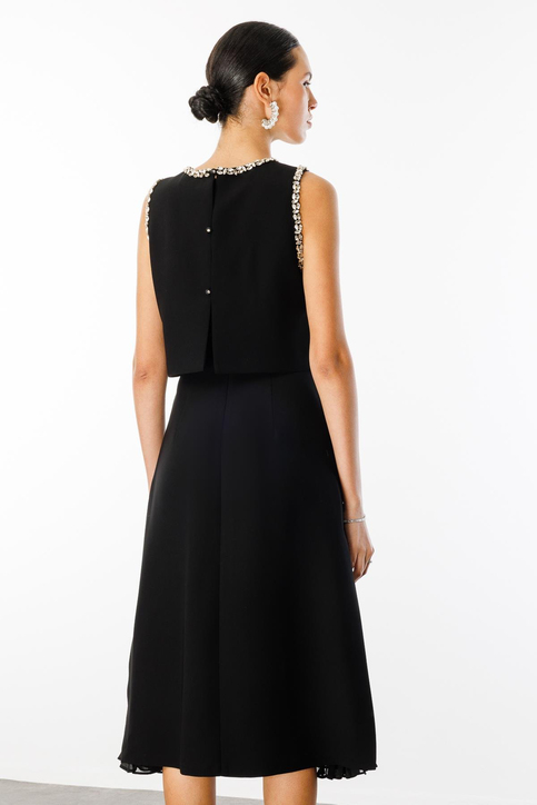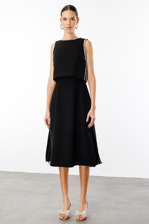 The dress's detachable vest allows you to create different looks. Wearing the vest gives you a more elegant and eye-catching style, while removing it allows for a simpler and more classic look.