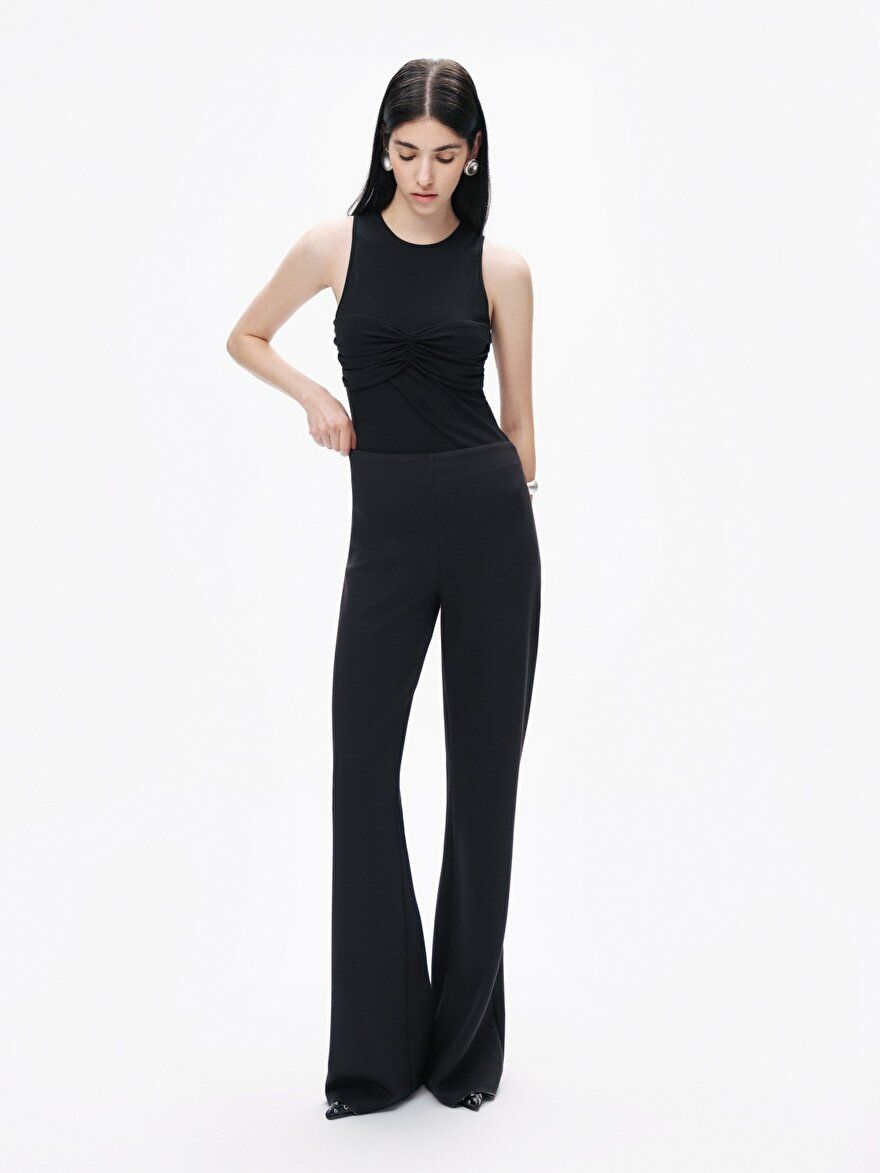 Product Description: Slim fit, true to size, unlined, snap closure at the bottom, crew neck, sleeveless, twist detail at the bust bodysuit.
