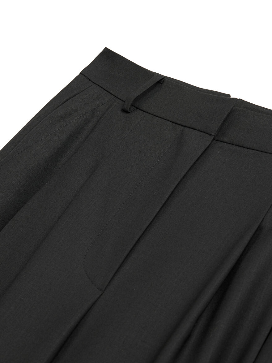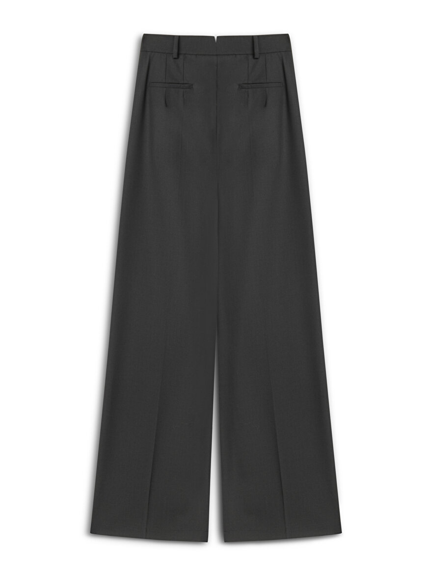 Product Description: Relaxed fit, regular cut, unlined, hook and zip closure, side pockets and non-functional welt pockets at the back, high waist, double pleated trousers.