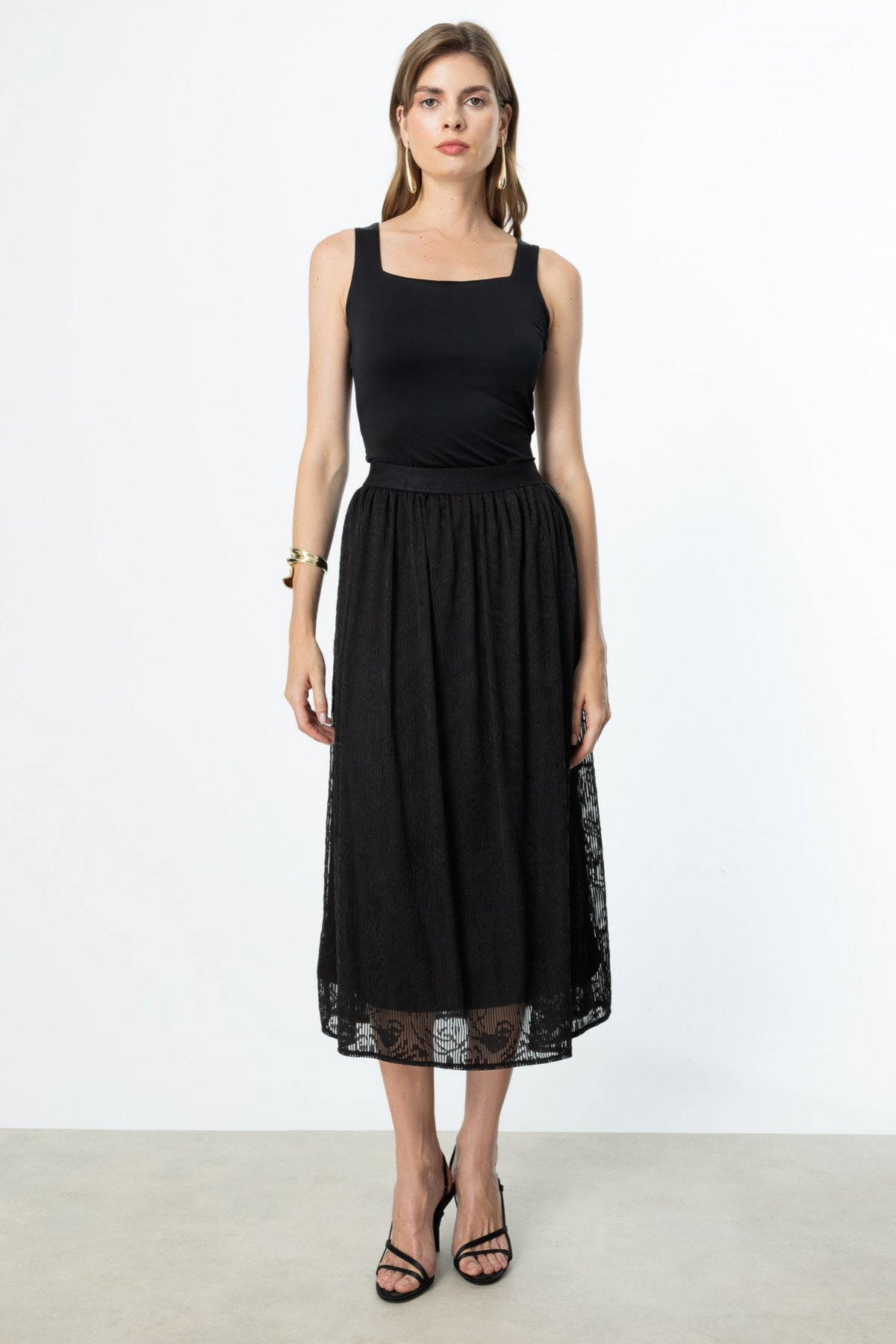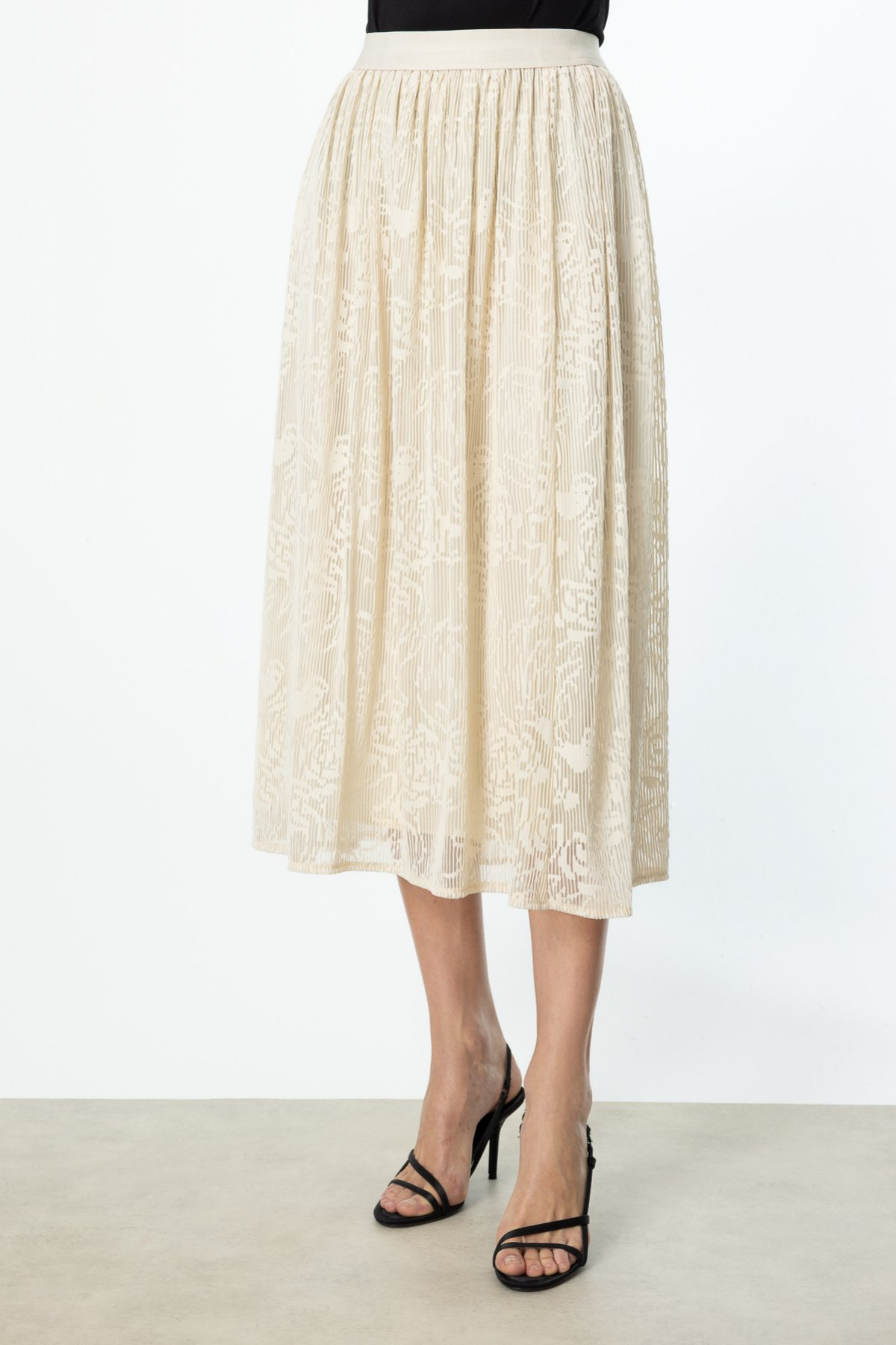 Patterned Tulle Skirt with Elastic Waist
