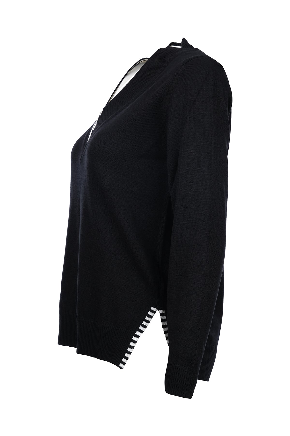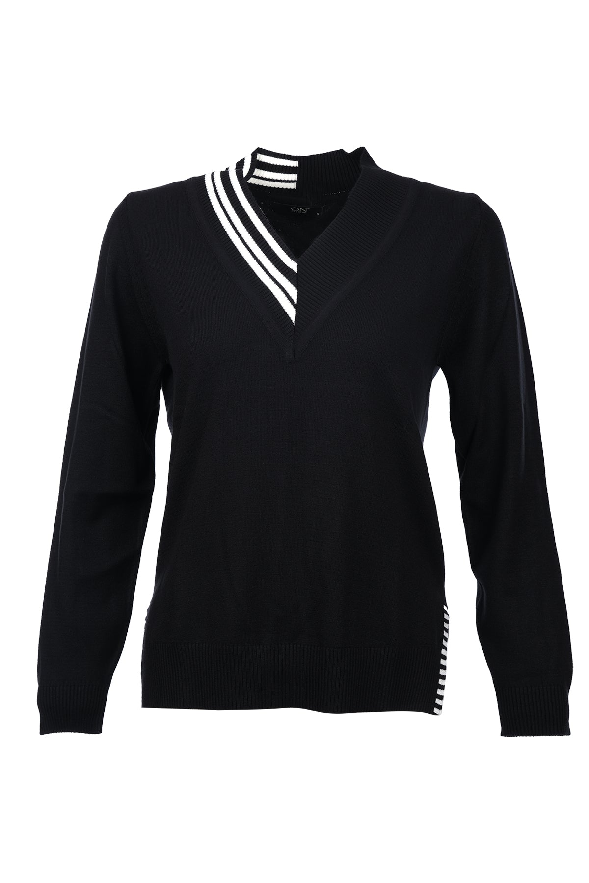 Complete your style with this women's sweater from the On brand, featuring a chic and minimalist design. Its long sleeves and V-neck complement any outfit. Ideal for everyday wear, this sweater offers all-day comfort with its soft and comfortable texture. Thanks to its high-quality materials, you can use this sweater for many years, making it an indispensable part of your wardrobe. It's a perfect choice to enhance your modern and stylish look. Ideal for those who love minimalist style, this sweater stands out with its versatility in various combinations. With its timeless design, you can wear it comfortably in every season. Thin stripe details on the sides add a modern touch. Available in oversize and regular fit options, you can choose the one that best suits your body type. Add this trendy sweater to your cart now!