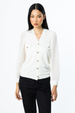 Ten Women's V-Neck Long-Sleeved Minimalist Blouse with Chiffon Details