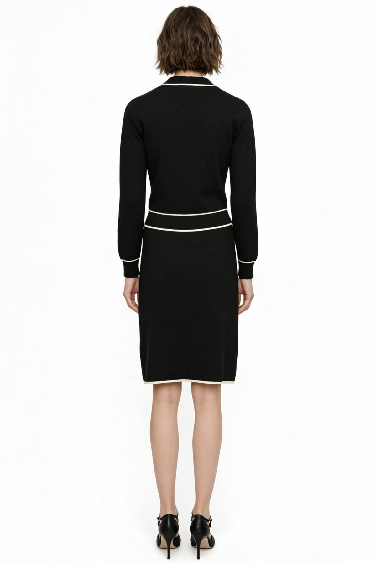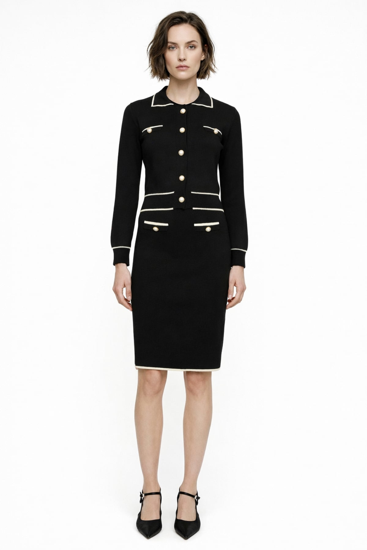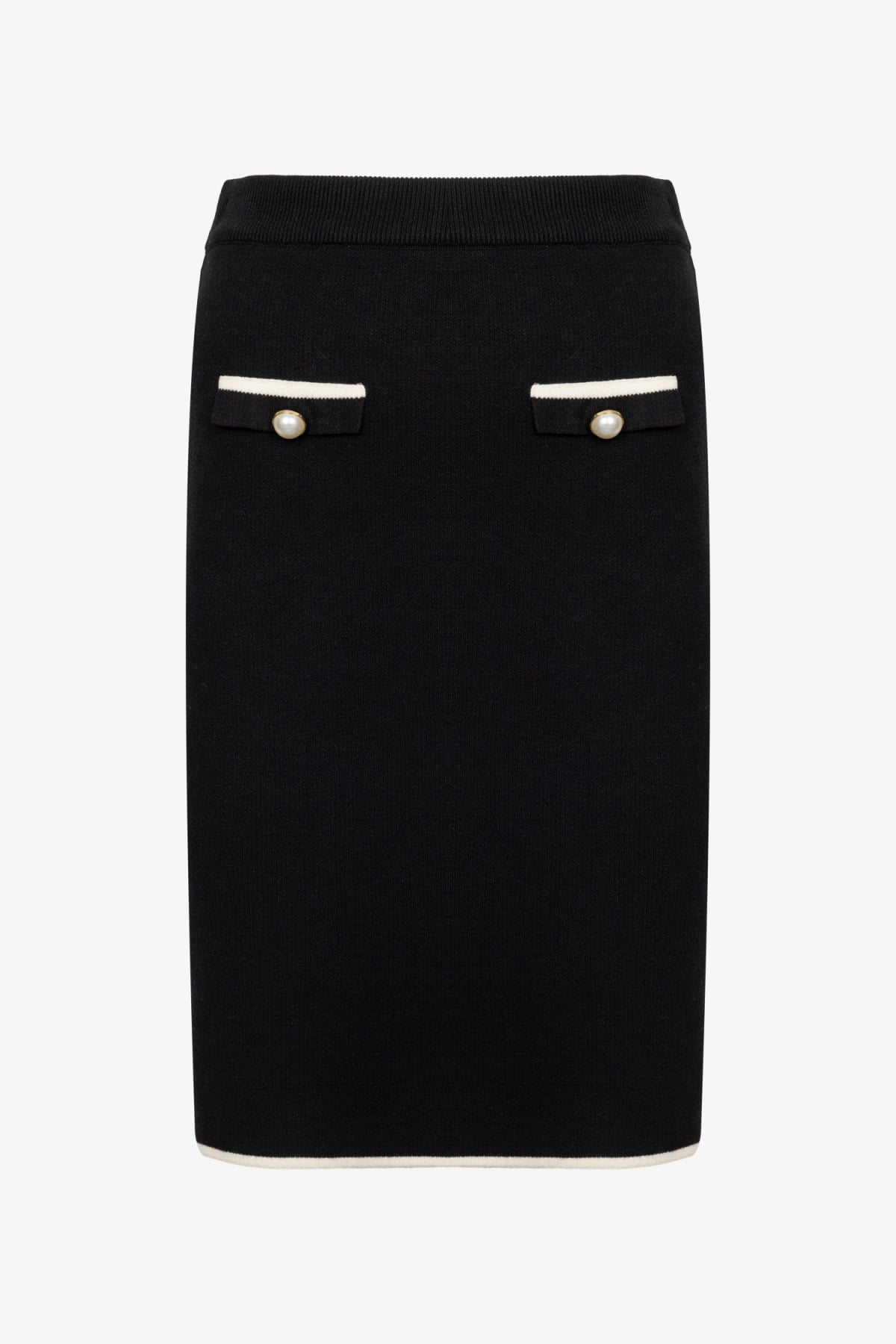 Knee-Length Knit Skirt with Decorative Buttons 26KON69915