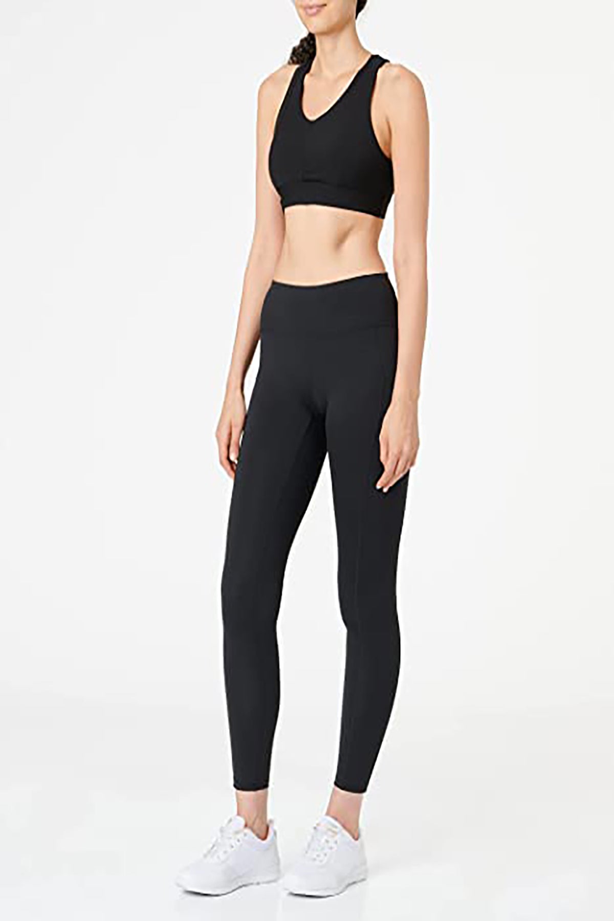 Color: Black; Women's Sports Bra with Round Neck Front and Cross Back; Padded, stretch material; 75% Nylon, 25% Elastane;