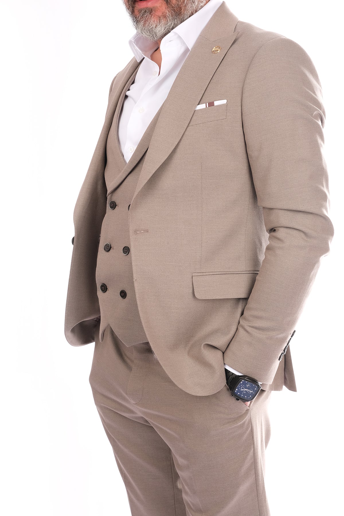 This three-piece suit from the Papyon brand stands out with its stylish and modern design. Its minimalist style makes it a striking piece for any occasion. The regular fit ensures a snug fit, combining comfort and elegance. Made from high-quality fabric, the suit is durable for long-lasting use. Suitable for various events such as job interviews, special occasions, weddings, and engagements, this suit will become an indispensable part of your wardrobe. The three-piece suit consists of a jacket, trousers, and vest. Its elegant look and quality fabric will add a sophisticated touch to your style. Feel special with Papyon quality!