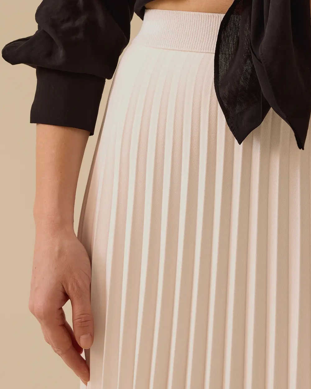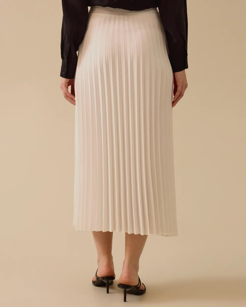 The Elastic Waist Pleated Skirt offers comfort with its flexible waist structure, and its flowing pleated design and long cut make it ideal for both casual and elegant outfits.