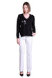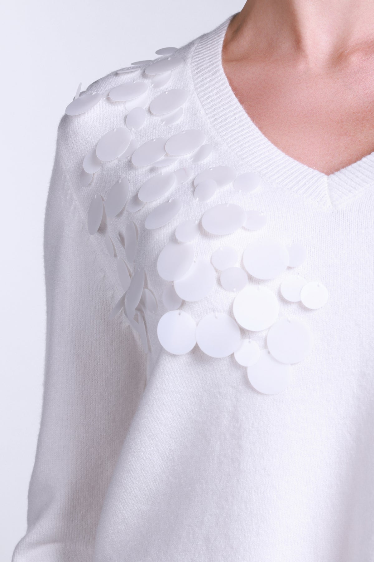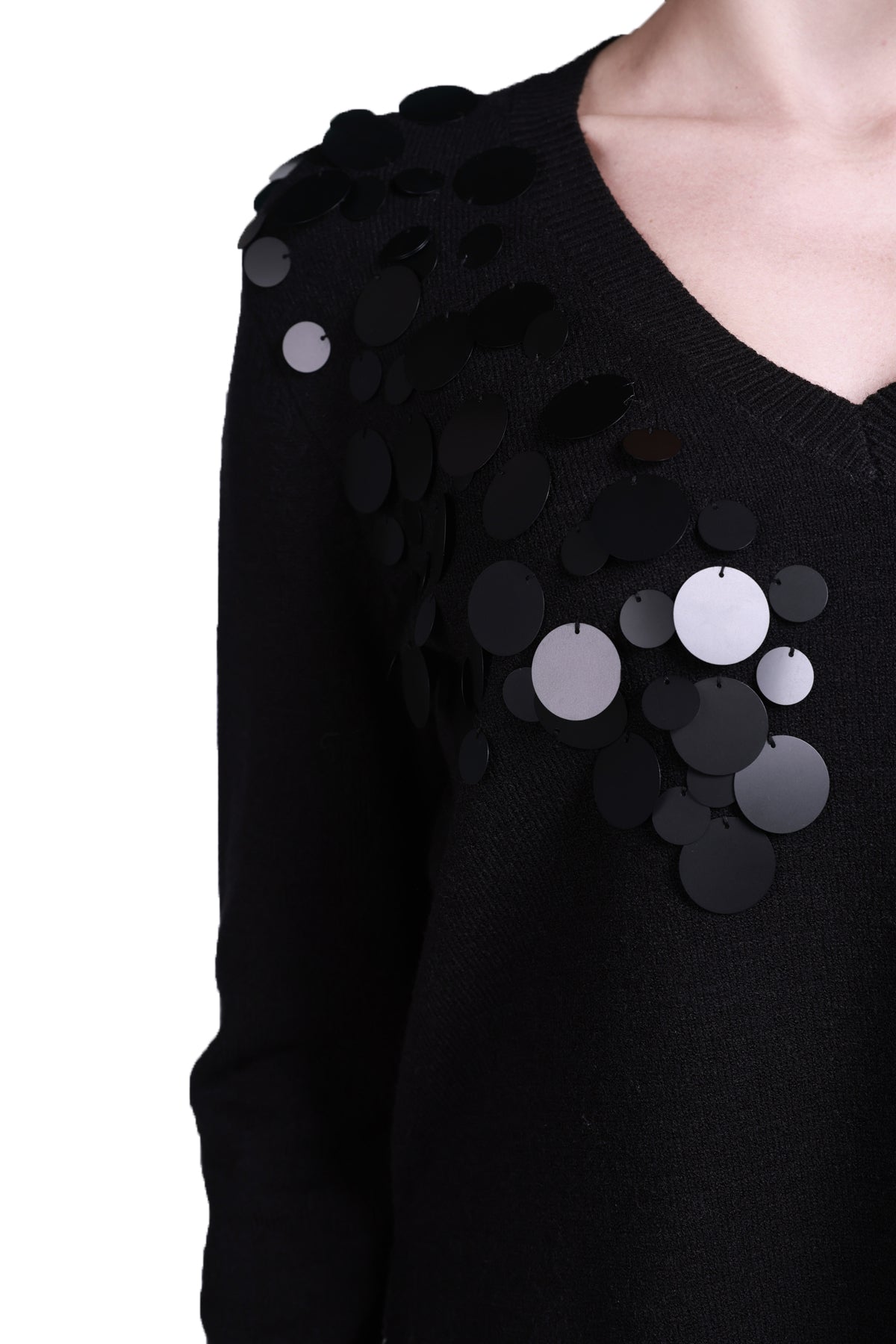 Sempre Women's Minimalist V-Neck Long-Sleeve Sweater - Stylish Sequin Detail