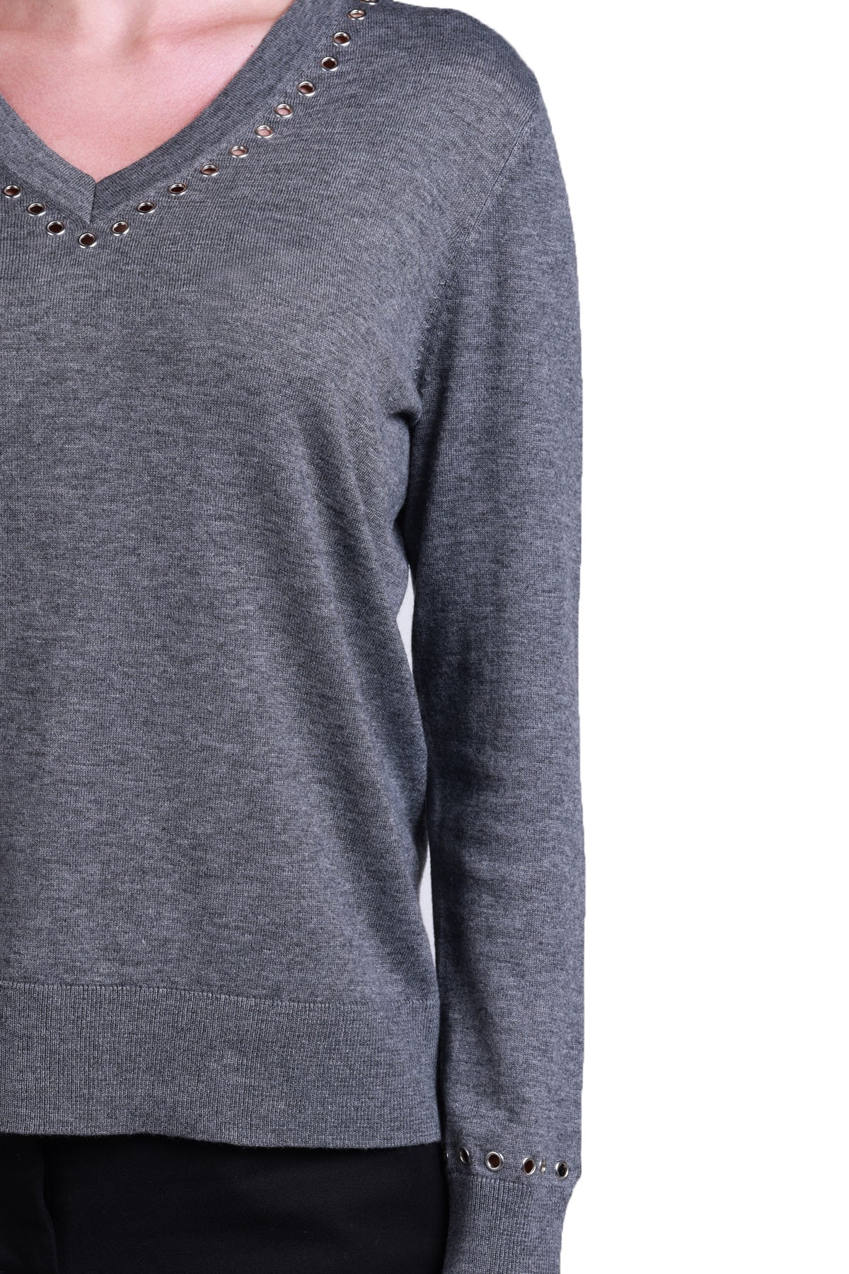 Introducing Sempre's stylish and modern women's sweater! Featuring a V-neck and long sleeves, this sweater adapts to any occasion, while metallic details add a sophisticated touch to your style. Made from soft, high-quality fabric, it offers all-day comfort and its minimalist style will make it a wardrobe staple. Easily styled for both everyday wear and work, you can pair it with trousers, skirts, or jeans for a chic and modern look. Made with quality materials and craftsmanship, this sweater will maintain its durability for a long time, adding value to your style and wardrobe. With its timeless design and comfortable fit, it's a piece you can wear for many years to come. Buy now and feel the difference!