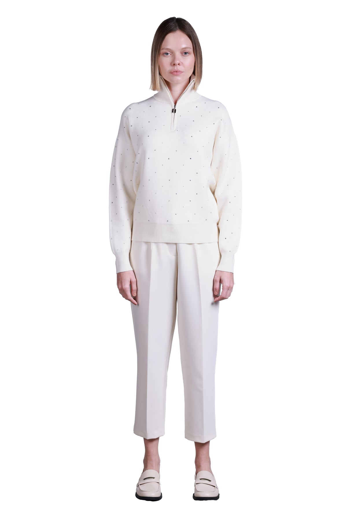 Sempre Oversize Minimalist Semi-Turtleneck Long-Sleeve Sweater