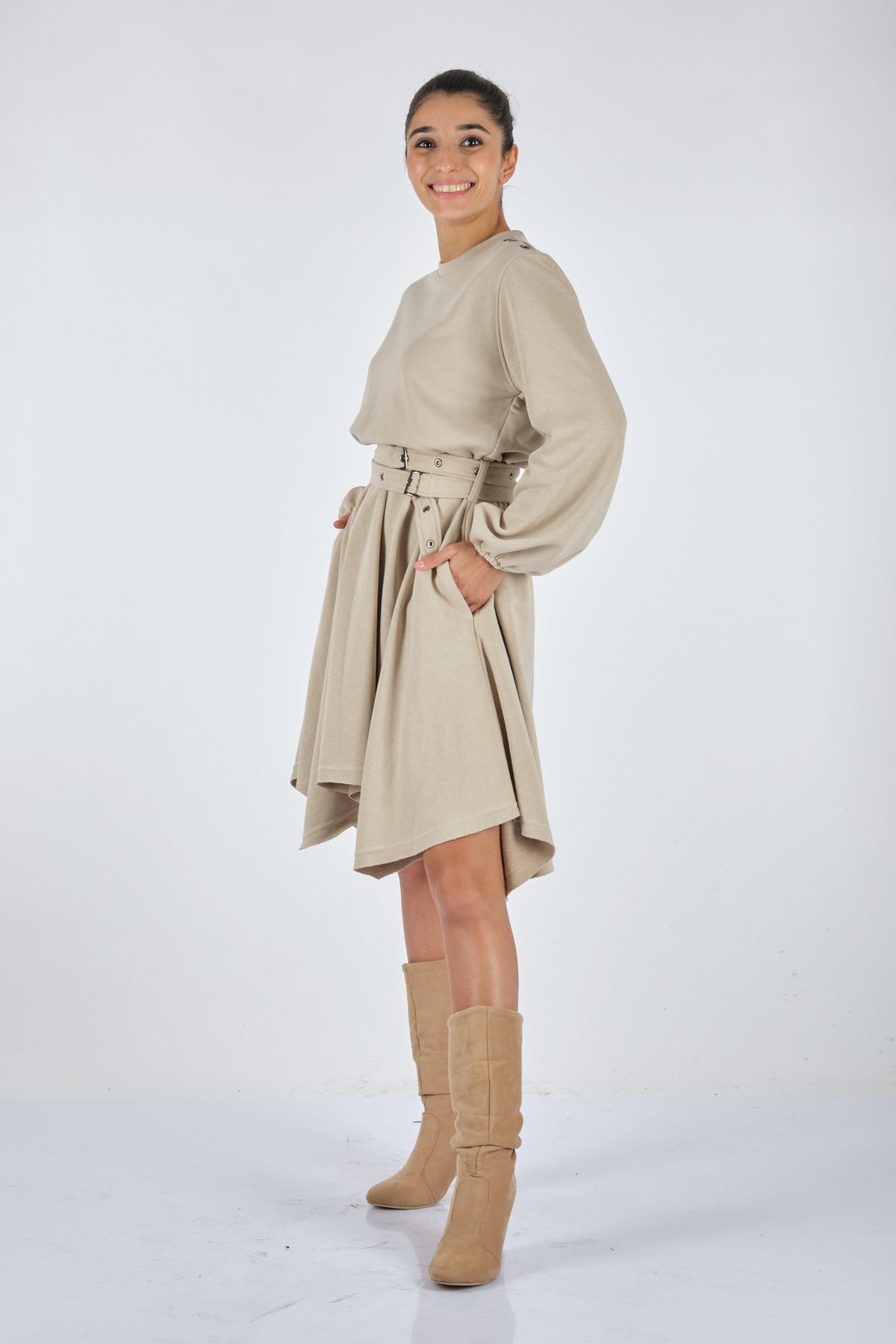 Production Location:Türkiye Fabric content: 45% COTTON 40% ACRYLIC 15% PES Model: 165 cm height, size 78,60,90 - 34 Washing instructions: IT IS A DELICATE PRODUCT. IT IS RECOMMENDED TO WASH THE PRODUCT BACKWARDS AT MAXIMUM 40°.