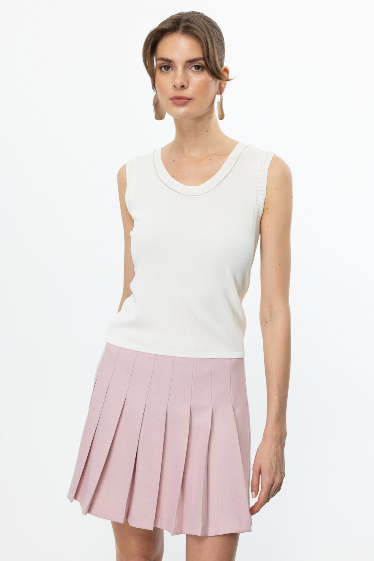 Sleeveless Blouse with Embellished Collar