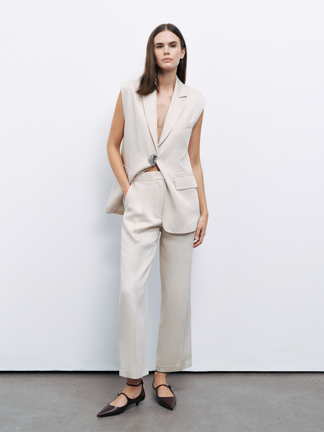 Product Description: Regular fit, true to size, lined, trimmed, concealed zipper and hook closure, normal waist, ankle length, concealed welt pockets at the back, slit detail at the hems.