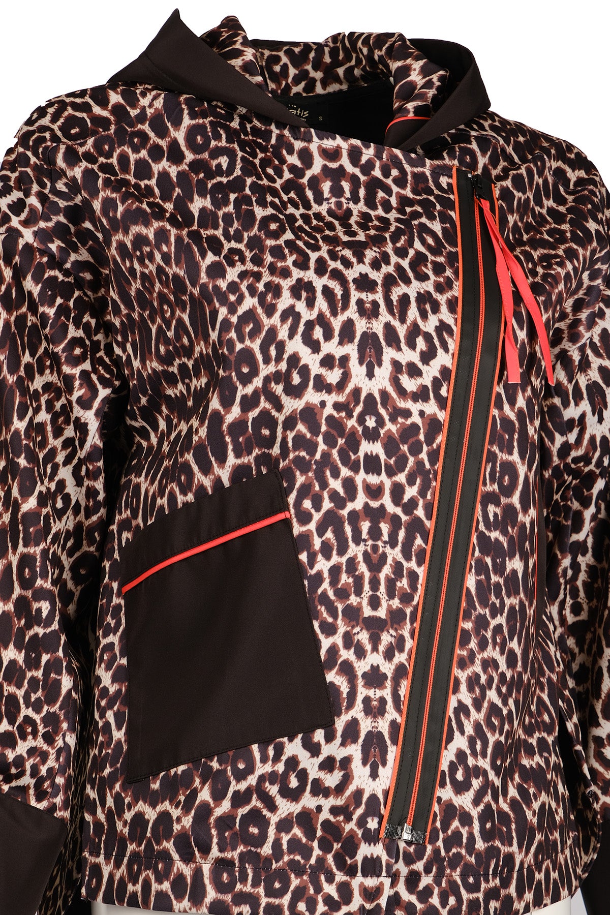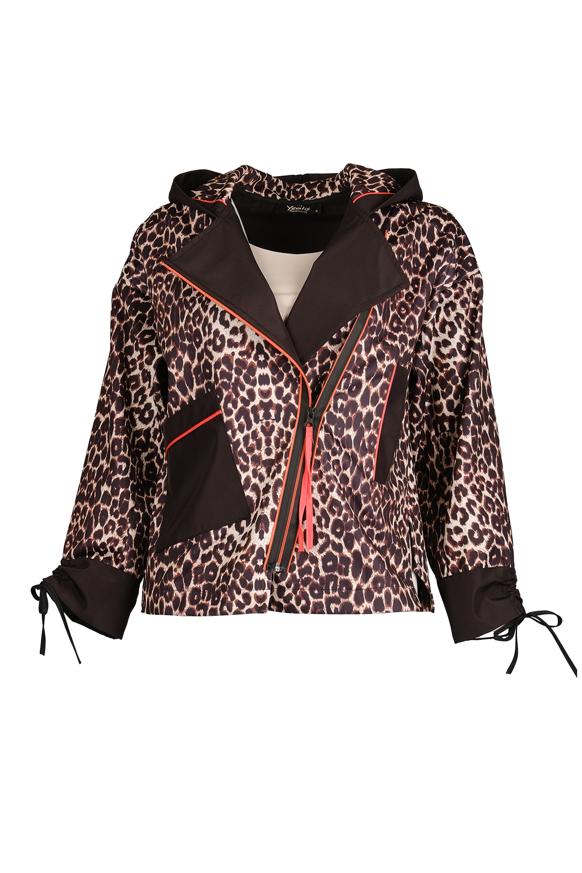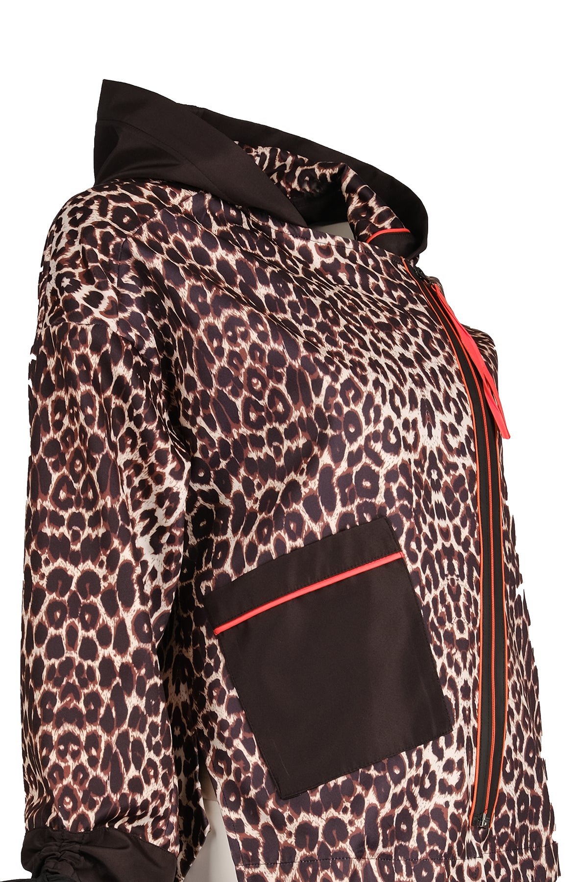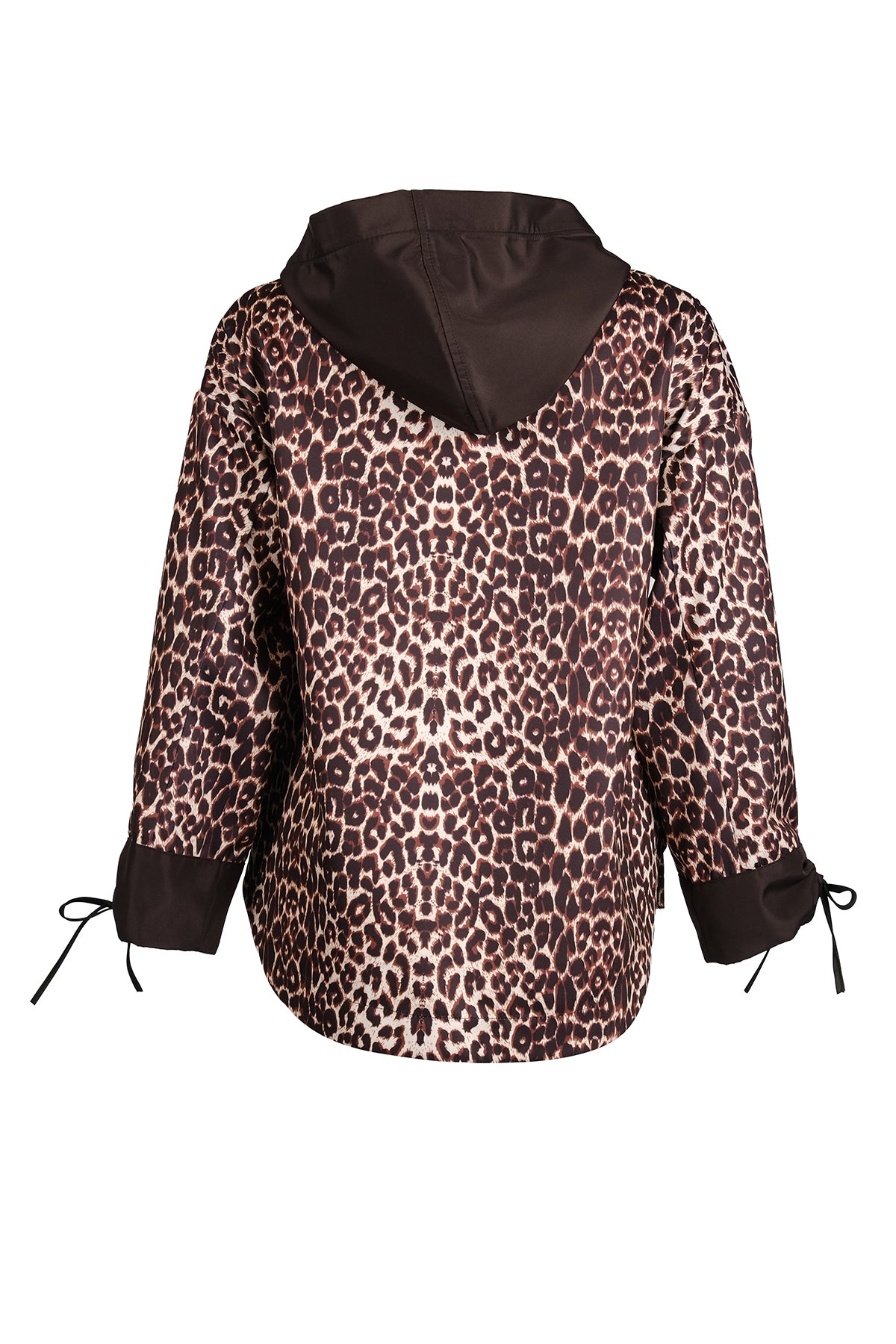 Ysatis Oversize Leopard Print Hooded Women's Jacket - Midi Length