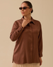 Büyük Beden Düğmeli Saten Gömlek, parlak dokusu ve zarif duruşuyla şık kombinler sunar.