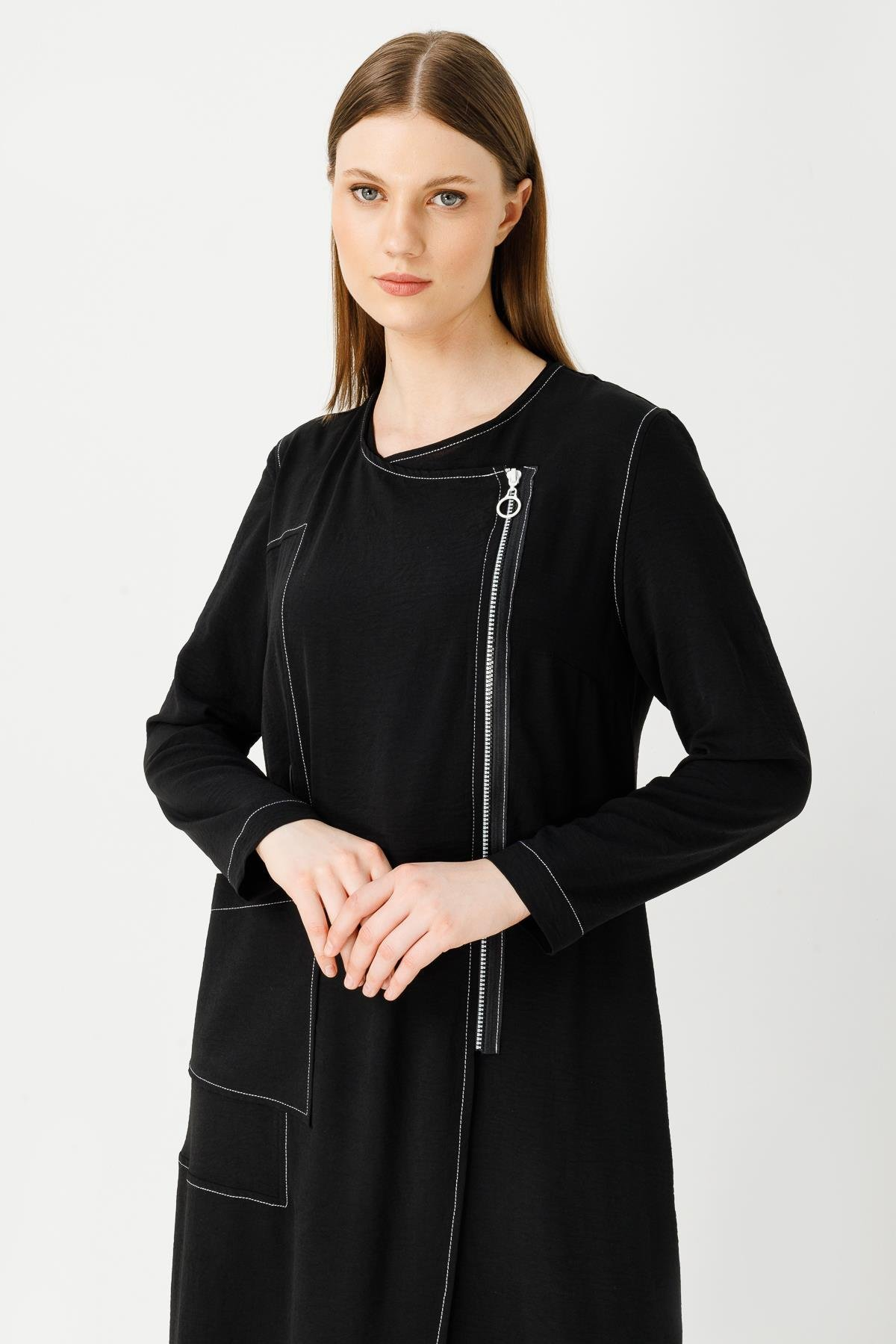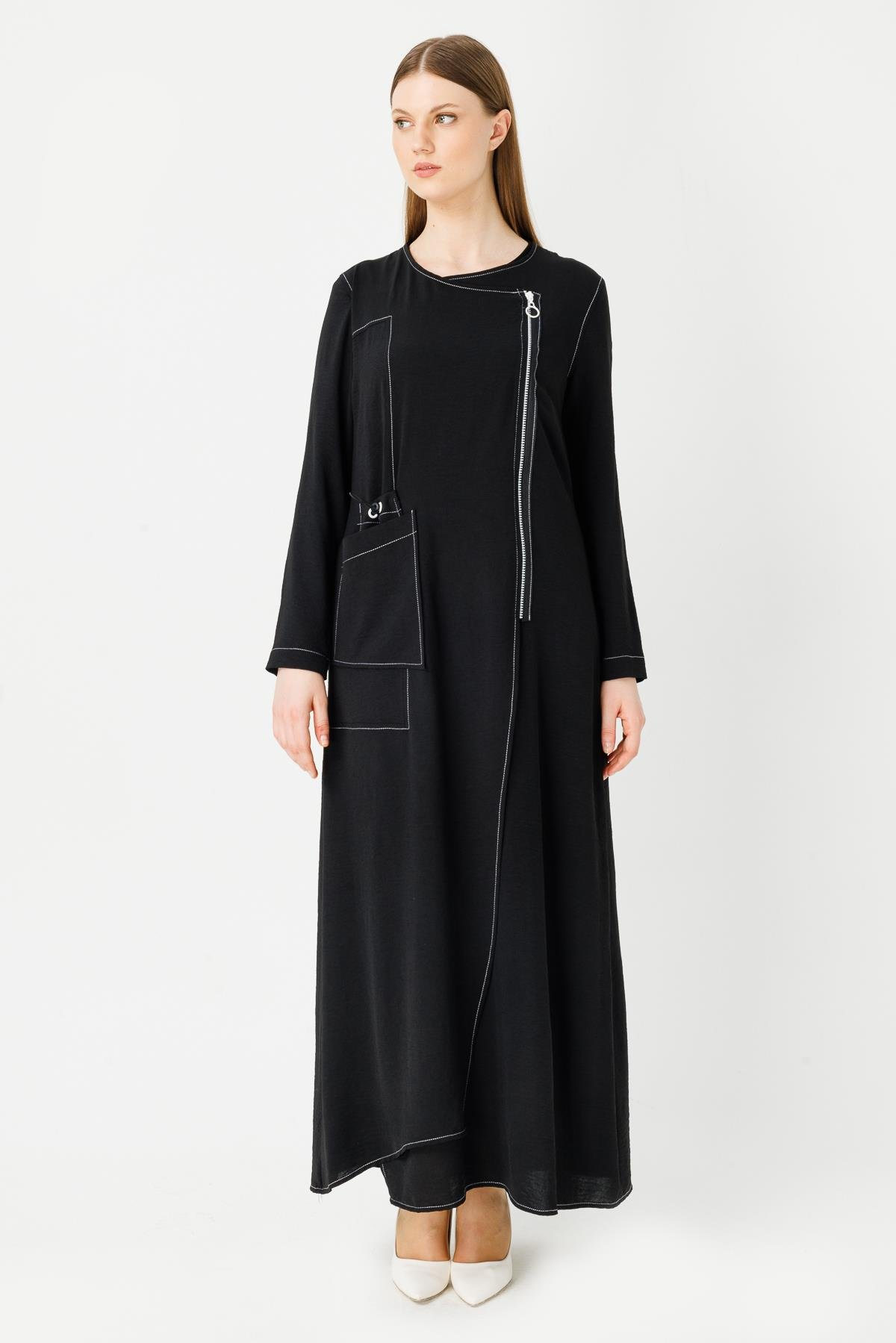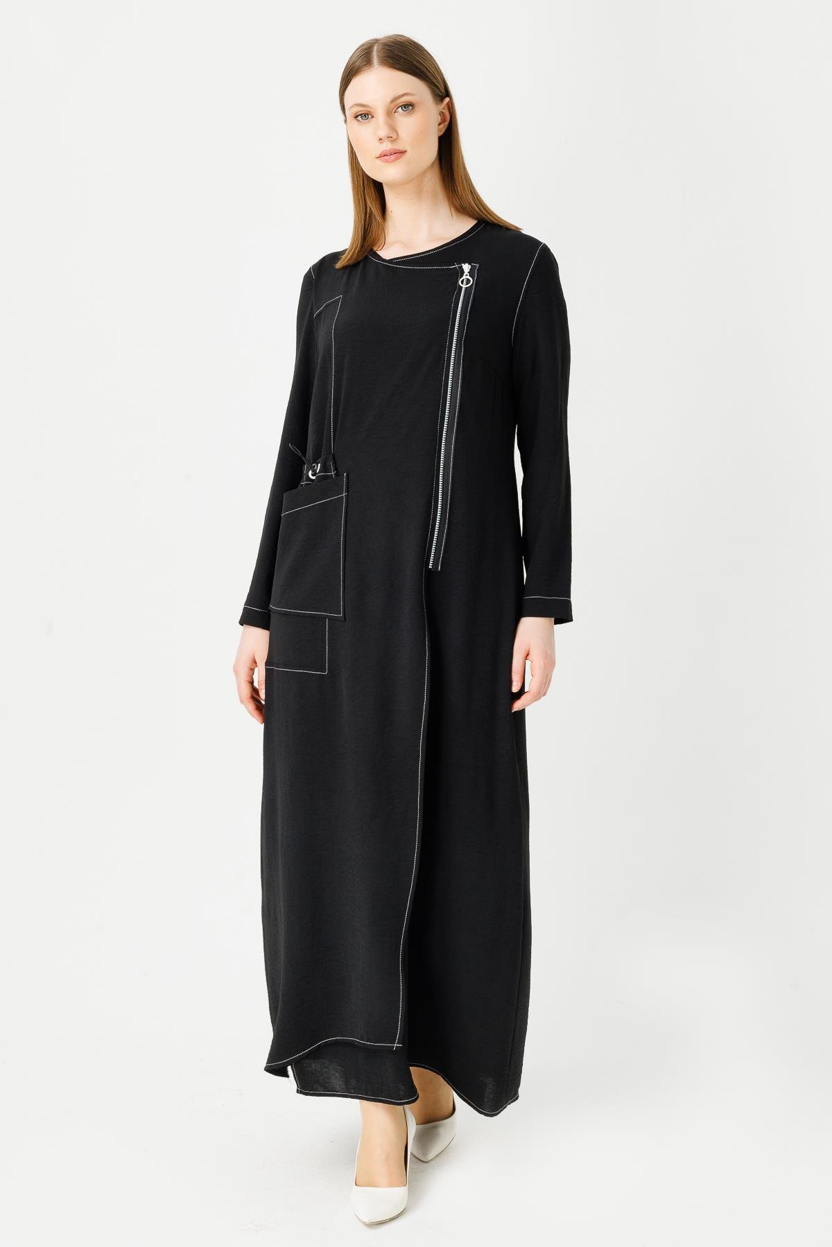 Ürün Açıklaması : Dokuma aerobin kumaş elbise modelimiz, Cep ve fermuar detayı ile hareketlendirilmiştir. Beyaz dikiş detayları kullanılmıştır.