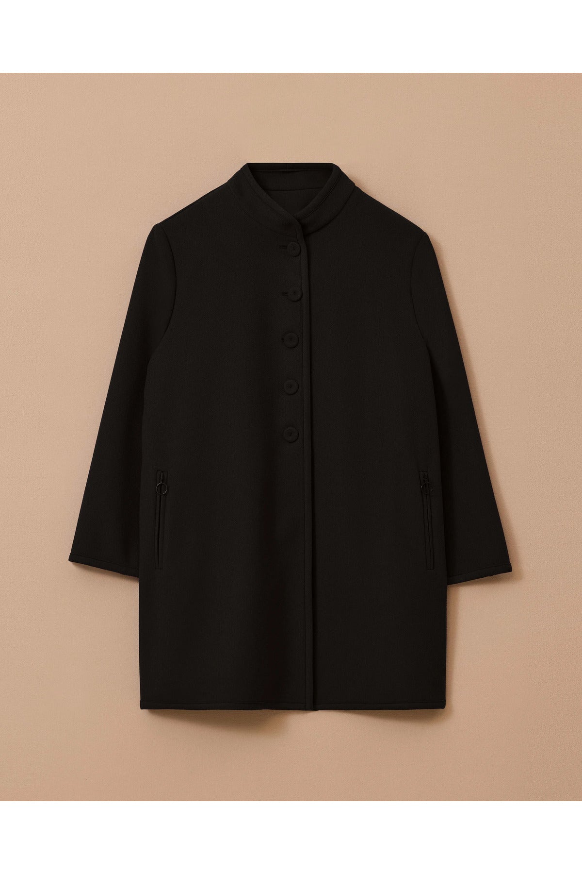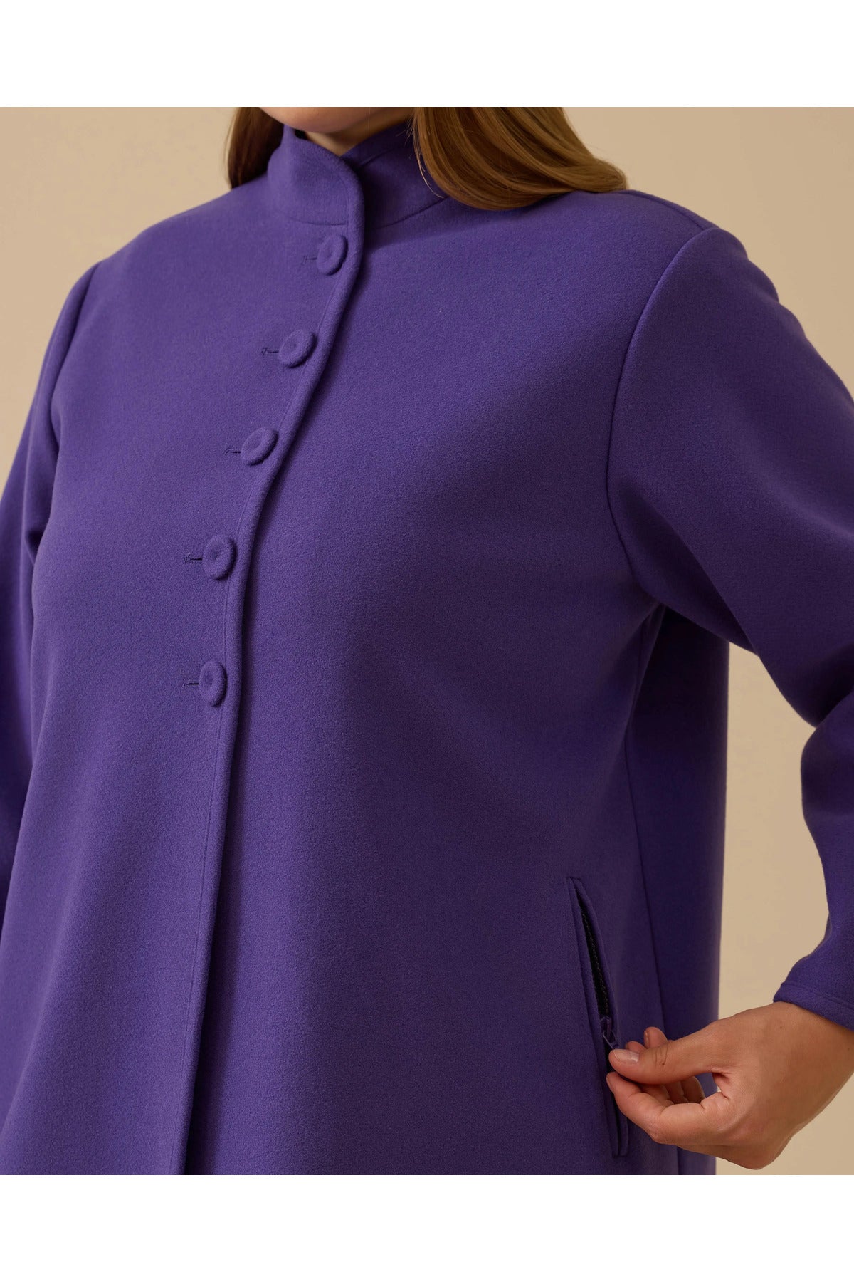 Büyük Beden Hakim Yaka Düğmeli Kaban, modern yaka kesimiyle şıklığı ve sıcaklığı bir arada sunar.